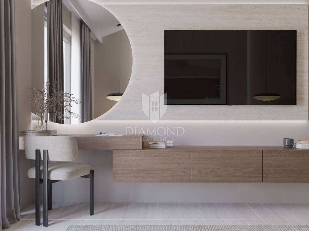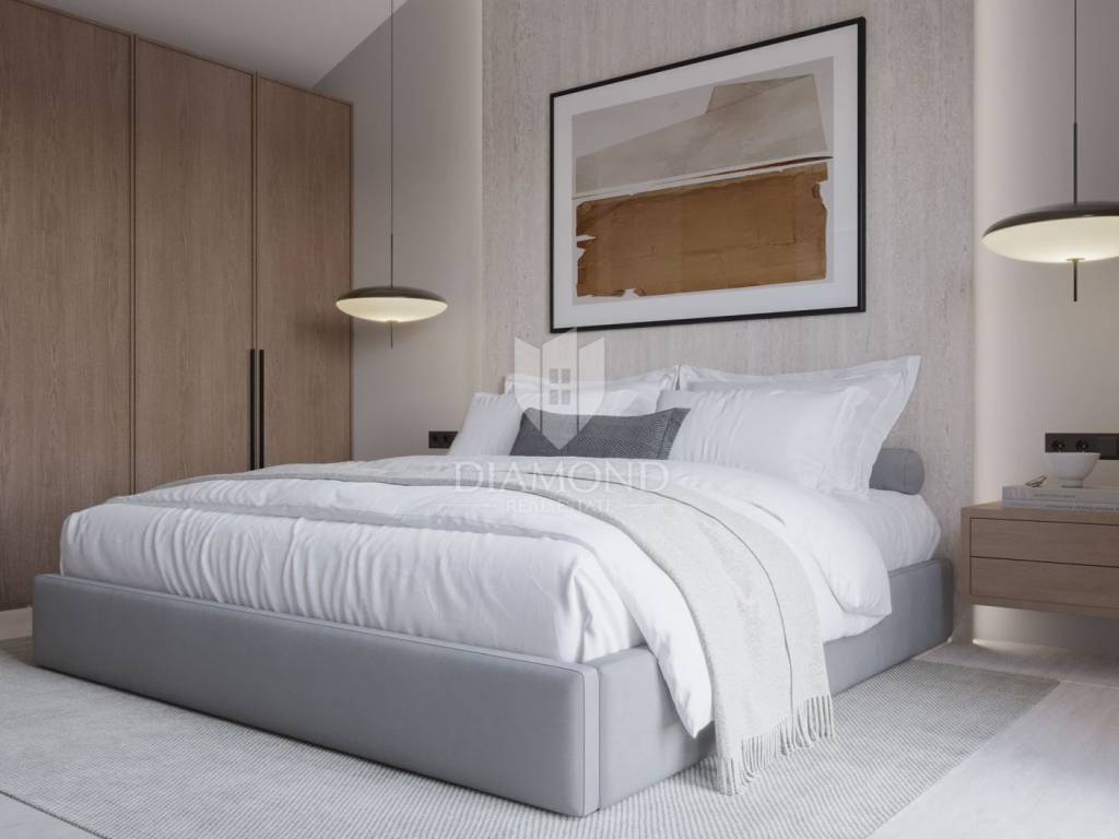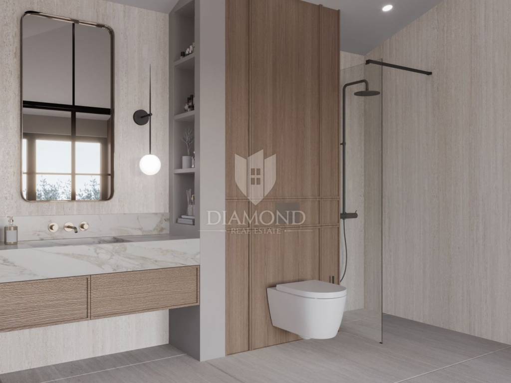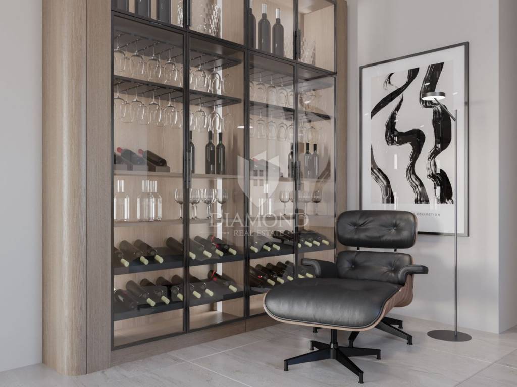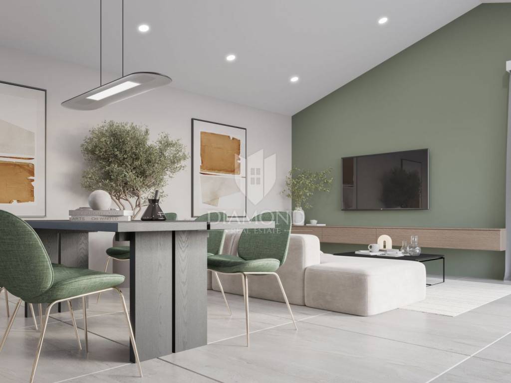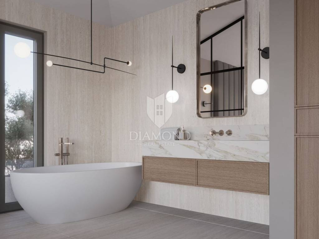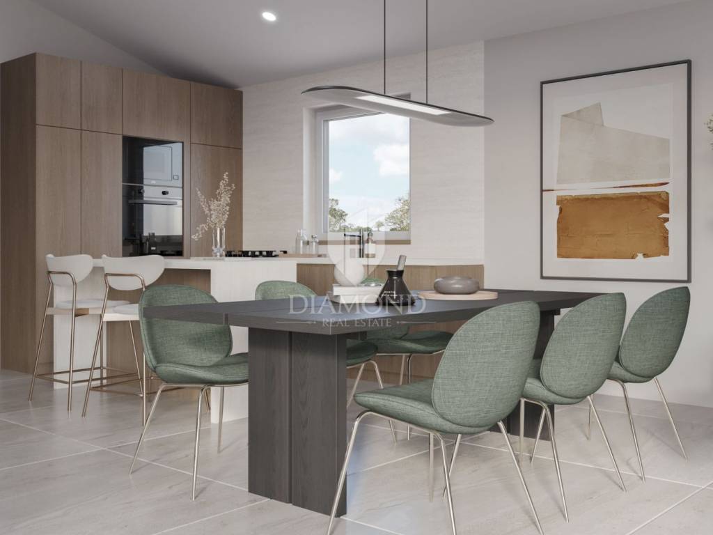 Modern single-storey house under construction with a swimming pool in a quiet environment near Poreč In the vicinity of Poreč, in a small village on the very edge of the settlement, this modern holiday home is located. The house is surrounded by luxurious villas and holiday homes. The house consists of a large, open living area with a dining room and kitchen, 3 comfortable bedrooms with en-suite bathrooms, a guest toilet and a storage room. Large glass walls provide access to a spacious garden of 1032 m², which includes two terraces, a swimming pool with a sundeck and parking for four cars. The house was designed with an emphasis on comfort and energy savings, with underfloor heating using a heat pump, two chimneys for an indoor and outdoor fireplace, as well as above-average ceiling heights with slopes that add to the space and elegance. Technically equipped as a smart home, it includes an alarm system, video surveillance, electric shutters, and the equipment is of a high standard. The furniture can be arranged according to the buyer's wishes. Construction is scheduled for completion in summer/autumn 2025, and the property is built with top-quality materials that allow for easy maintenance, reduced costs and high tourist rental income. This luxury home is ideal for those who want to enjoy a peaceful environment with top-notch amenities, while being close to Poreč and its coast!