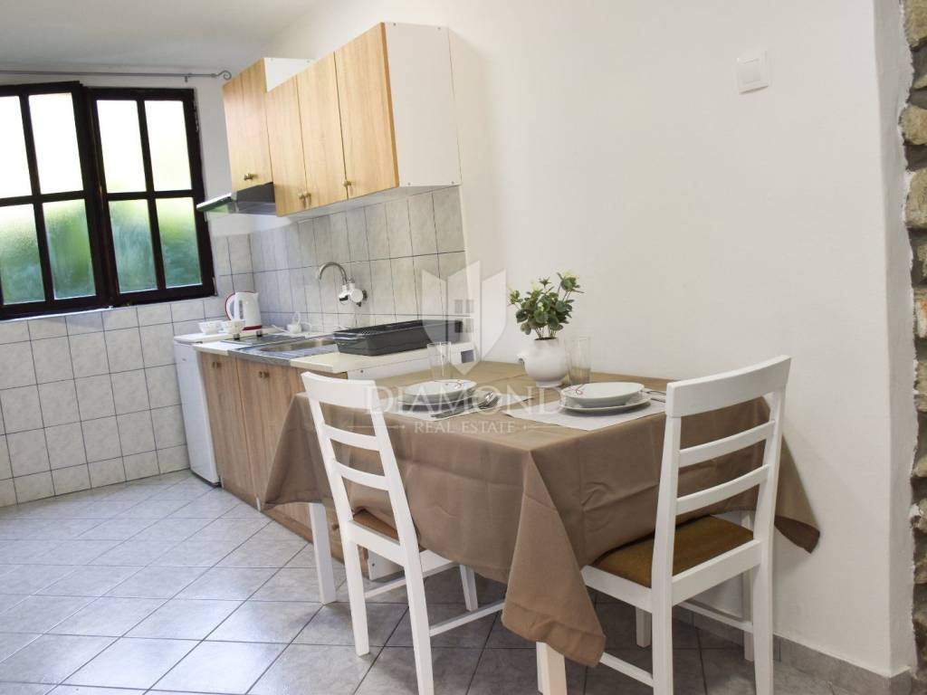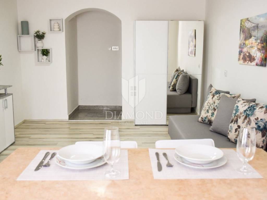 Ground floor apartment in the center of Poreč with two separate units - an ideal opportunity for living and investment! Located in the very center of Poreč, this ground floor apartment offers the ideal combination of comfort, functionality and an excellent location. With a total area of 90 m², the apartment is divided into two separate residential units - a spacious 60 m² apartment with a living room, kitchen and dining room, one bedroom and bathroom, and a separate 30 m² studio consisting of one room and bathroom. This layout allows the future owner flexibility - the possibility of renting one unit while living in the other or combining the spaces into one unit according to their own wishes. The apartment is sold fully furnished and equipped, and the classic style of construction and the presence of a chimney allow for additional heating options. Cooling and heating are provided by air conditioning, while parking in front of the house is provided for permanent use. In addition to the functional layout, the property stands out for its exceptional location. Located in a quiet street, but in the immediate vicinity of all amenities, it offers walking access to shops, schools, kindergartens, playgrounds, hospital, church and public transport. The sea and beaches are just a few minutes walk away, which further increases the value of this property. This is a rare opportunity on the market for those looking for a quality apartment in the city center, with the additional possibility of investment through tourist rental or adaptation to your own needs.