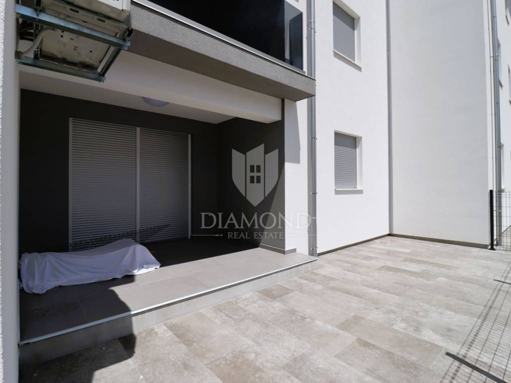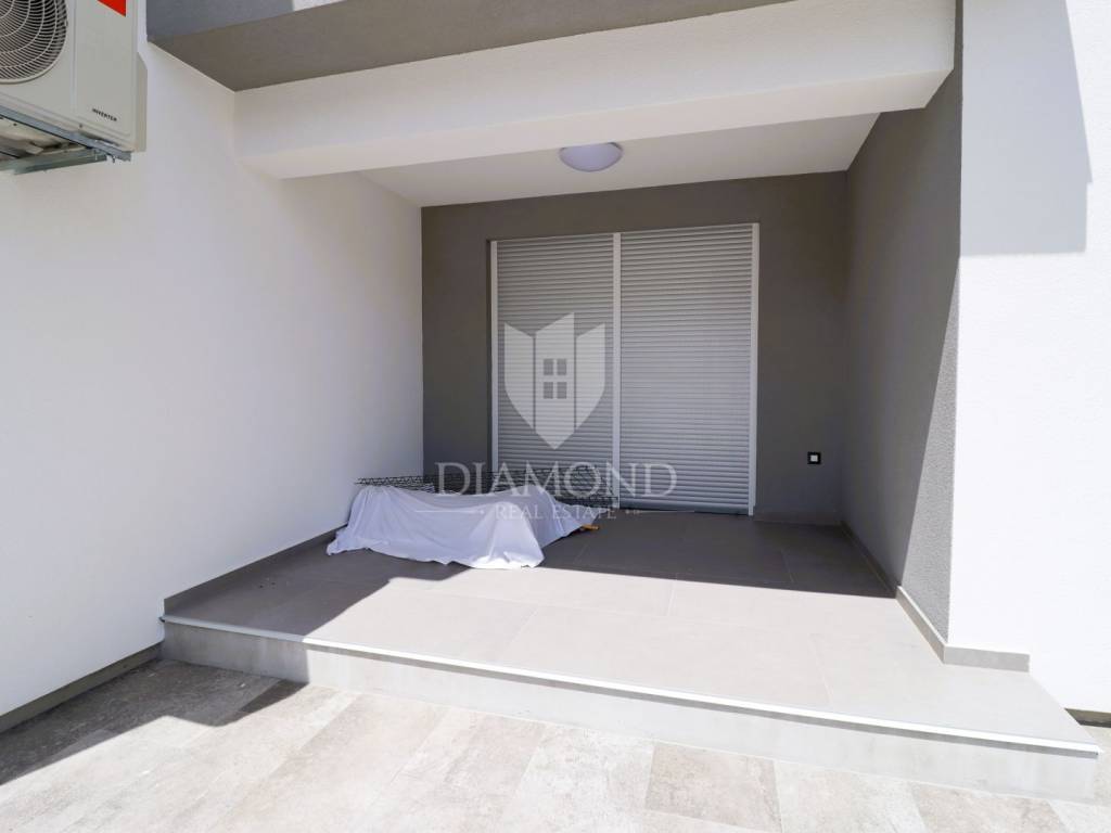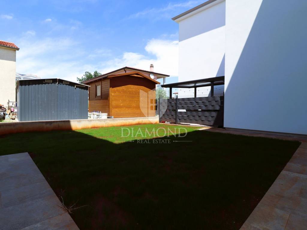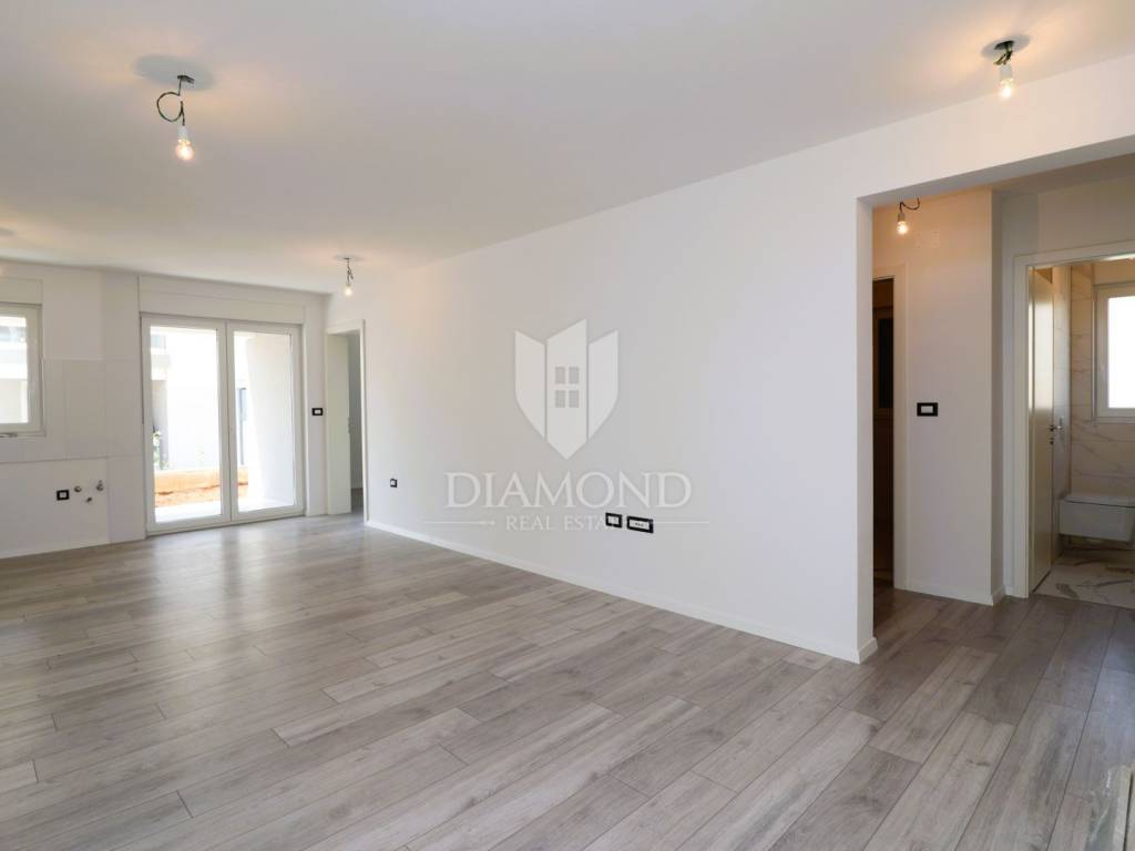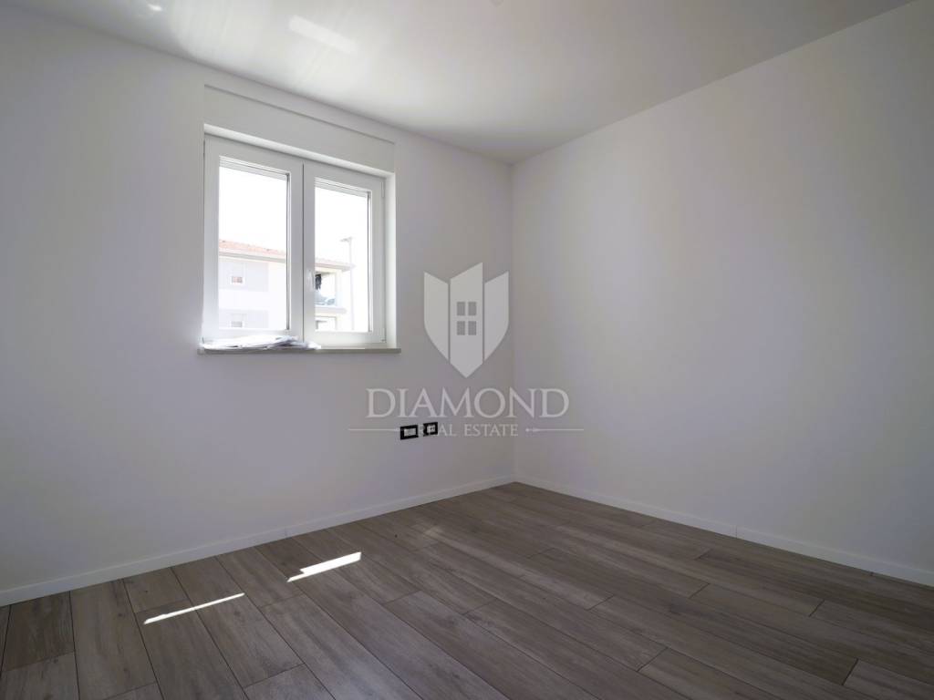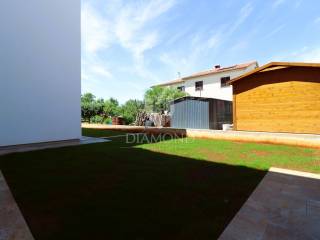 Poreč, surroundings, ground floor apartment with a back garden and a front terrace! In a quiet location only 7 kilometers from the town of Poreč and its well-maintained beaches, there is a modern residential building with a total of nine apartments. On the ground floor of the building there is a spacious and functionally arranged apartment that offers comfort and convenience, making it an ideal choice for family life or a long-term rental investment. The apartment consists of a bright open-concept living room, connected to the dining room and kitchen, two comfortable bedrooms that provide enough space for the family, and a bathroom. The living room on the front side leads to a covered terrace with an additional attached part, while the back side and one bedroom have access to a private garden that is in exclusive ownership and is the perfect space for outdoor living, children's play, gardening or setting up other additional facilities. The apartment is equipped with air conditioning in each room, which, thanks to its quality construction and excellent thermal insulation, ensures a pleasant temperature throughout the year, while the bathroom has underfloor heating for additional comfort. The security door provides an additional sense of security, and the apartment already includes installed flooring in the kitchen and complete sanitary facilities, which makes moving in significantly easier. The apartment also comes with its own parking space, and the immediate proximity of all key amenities – such as shops, restaurants, schools, kindergartens and children's playgrounds – further confirms the attractiveness of this property for everyday life. This apartment represents an excellent opportunity for those looking for a quality home close to all amenities, but also for investors who want a secure and long-term rental investment in one of the most sought-after areas of Istria.