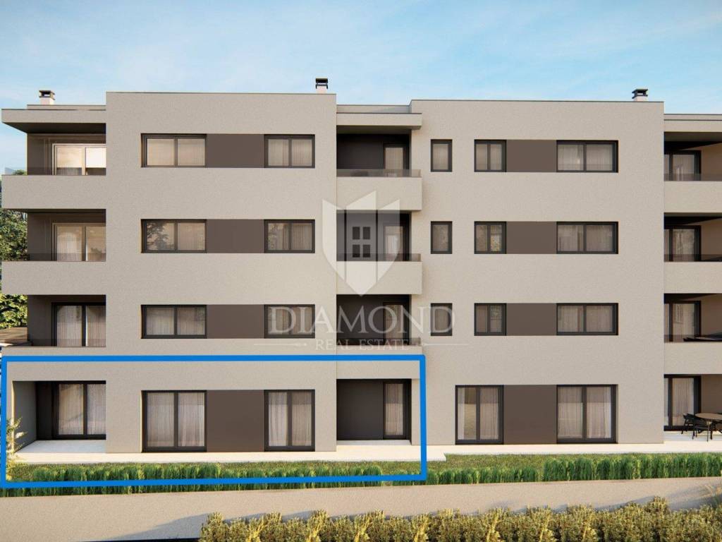 Surroundings of Poreč, three-room apartment on the ground floor with a garden! This interesting apartment on the ground floor with a total of 70 m2 of garden is for sale in an attractive tourist location not far from the first beaches. The building will contain a total of 11 apartments. The total area of the apartment on the ground floor is 88.16 m2, and it consists of a living room, kitchen and dining room, three bedrooms, one bathroom and a toilet. From the living room we go directly to the terrace. The heating of the apartment is planned through low-energy floor heating, and the first phase will be prepared for the installation of air conditioning, which the buyer will have the opportunity to do it himself. The apartment has two parking spaces. The building will have an elevator. The planned completion of construction works is July 2025. The property is included in the VAT system, therefore VAT is included in the amount. Shops, restaurants, post office, children's playground and everything you need for life are just a few minutes' walk away. Due to its tourist location, this property is an ideal investment for both tourist rental and family life.