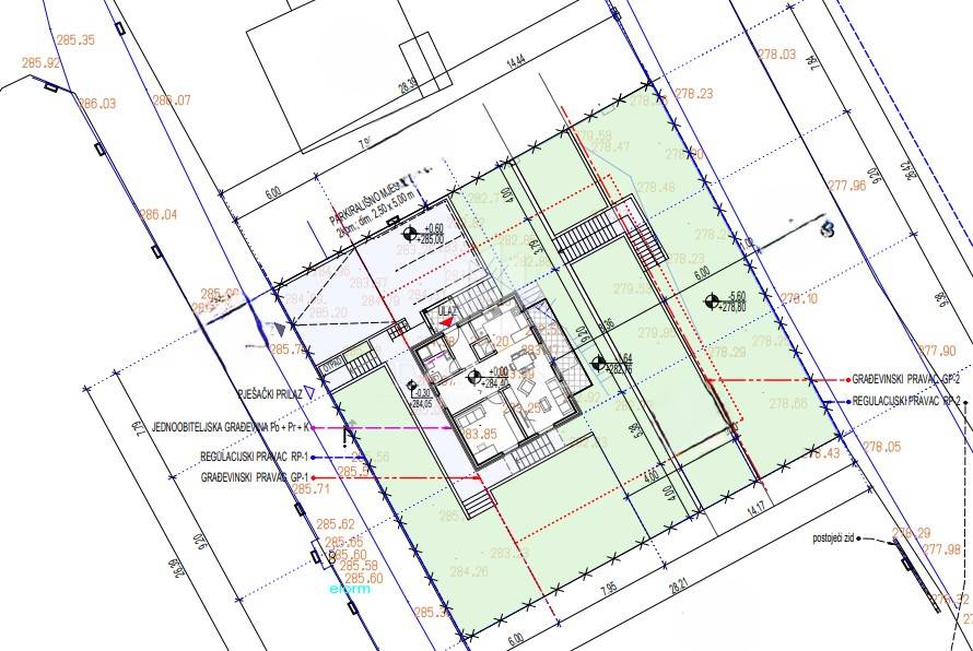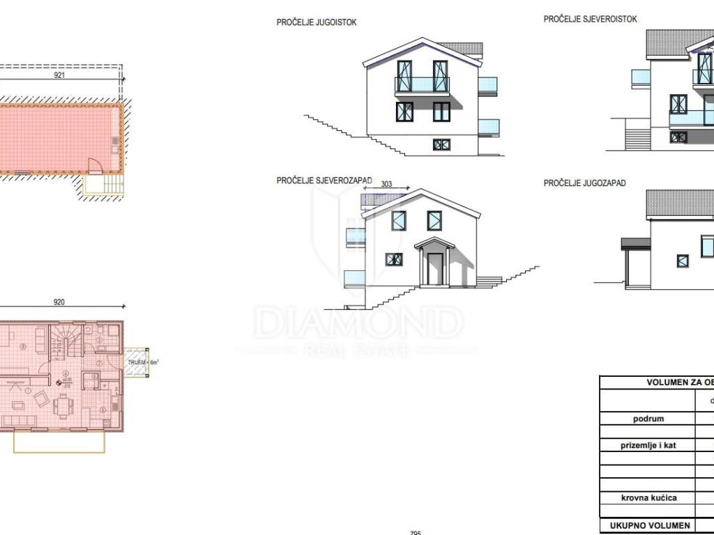 Velika prednost ovog zemljišta je to što se prodaje s već izrađenim projektom za obiteljsku kuću od 180 m², koja se sastoji od suterena, prizemlja i kata. Važeća građevinska dozvola je ishodovana, a sva komunalna davanja su plaćena. Sve što je potrebno je započeti gradnju – bez gubitka vremena na dugotrajne administrativne postupke.