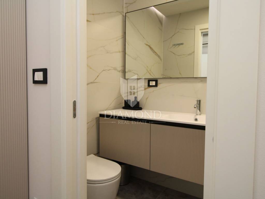 Located in one of the most sought-after areas of Rijeka, this luxuriously furnished apartment is situated in a modern building with an elevator and only four floors, offering the perfect combination of comfort, elegance, and functionality