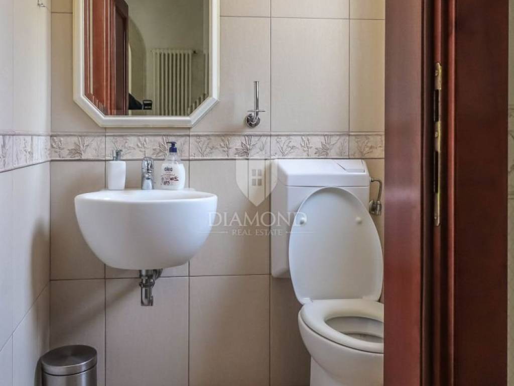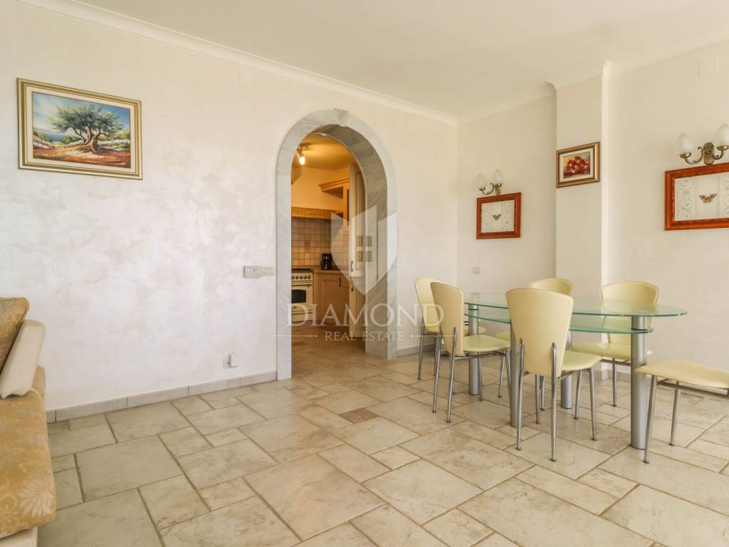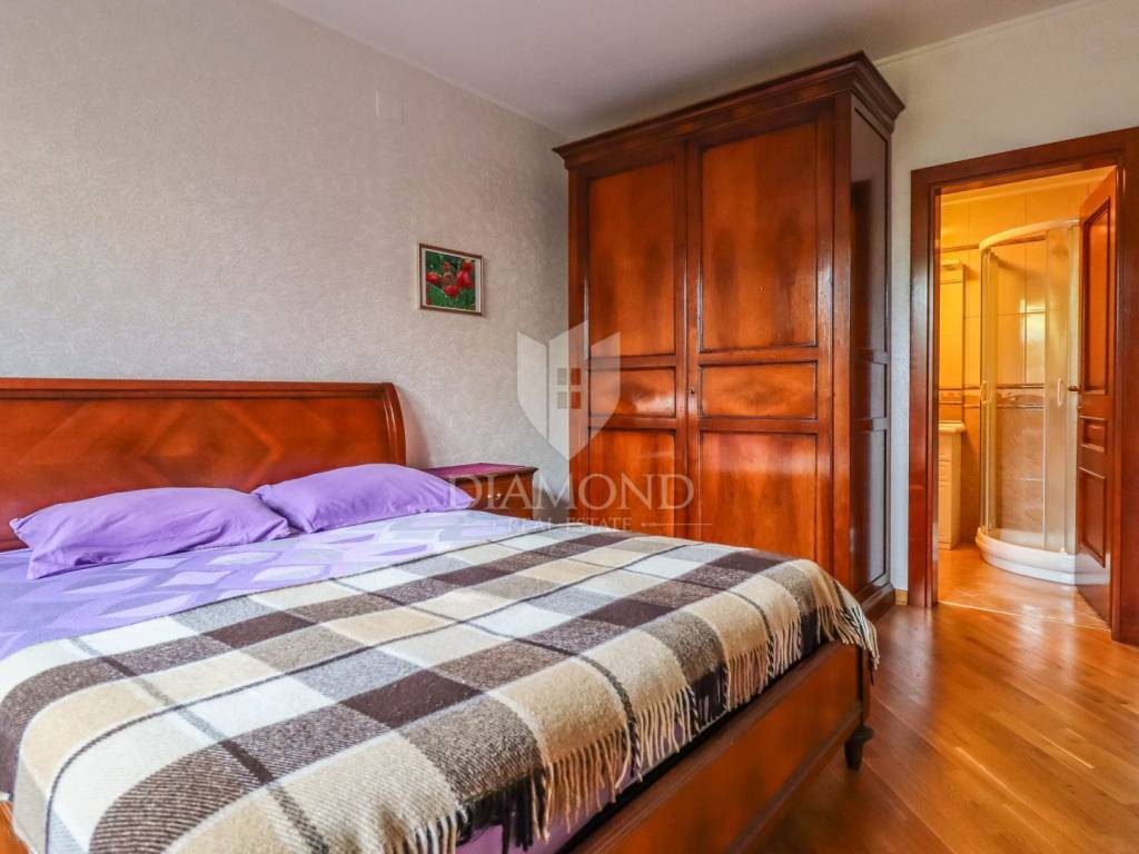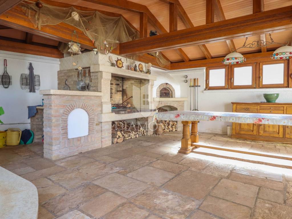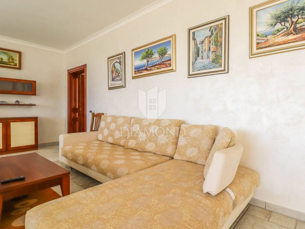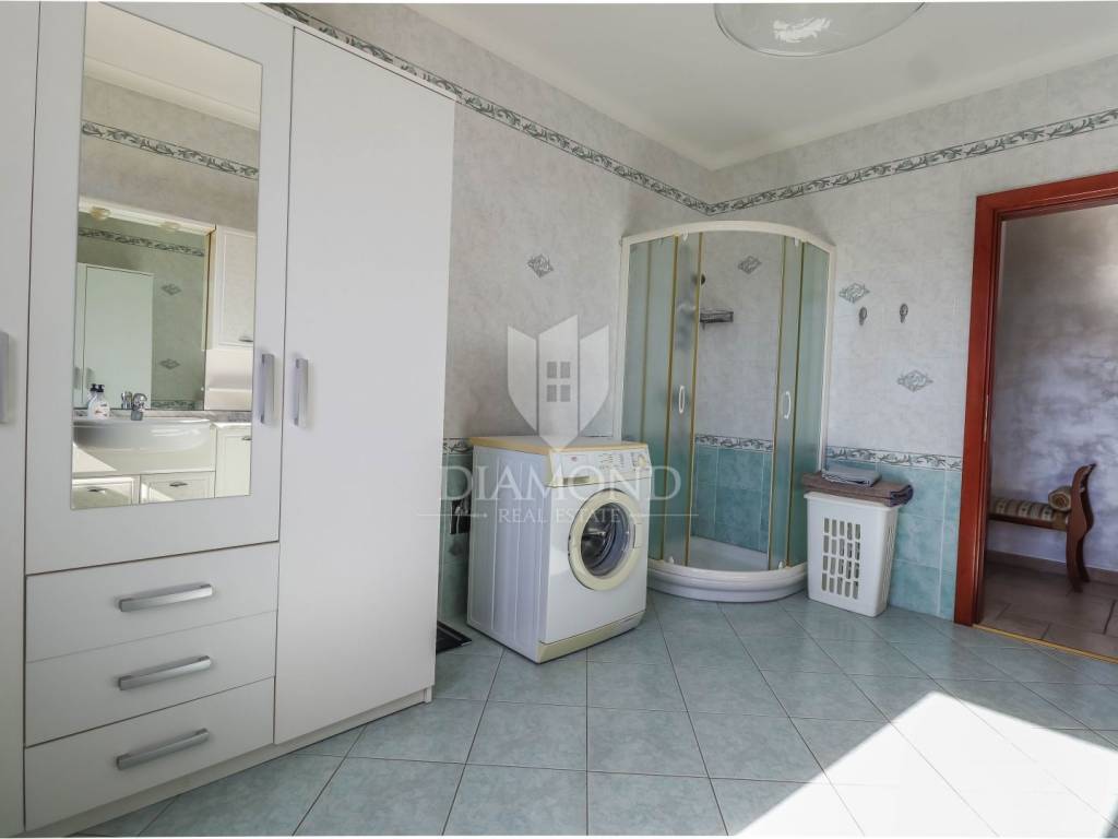 Situated on a spacious plot of 1191 m², this 250 m² house exudes elegance, comfort and Mediterranean charm. It extends over two floors and offers two completely separate and independent apartments, which allows for comfortable family life or an excellent investment opportunity. On the first floor there is a bright and spacious apartment with a separate entrance, which includes two bedrooms, each with its own private bathroom, a modernly equipped kitchen and a comfortable living room with access to a large terrace. The terrace offers a captivating panoramic view of the sea, ideal for enjoying sunsets and relaxing in peace and quiet. On the ground floor of the house there is another separate apartment with its own entrance, consisting of two bedrooms, a bathroom, an additional toilet, a kitchen and a spacious living room with access to a terrace and a landscaped garden. In the yard there is a covered summer kitchen with a fireplace, perfect for gatherings and summer evenings outdoors, covered parking and two basements that provide additional storage space.