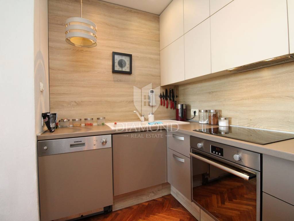 The apartment also includes practical features like a storage room for extra space and secured parking, which is especially valuable in a popular tourist destination like Opatija.