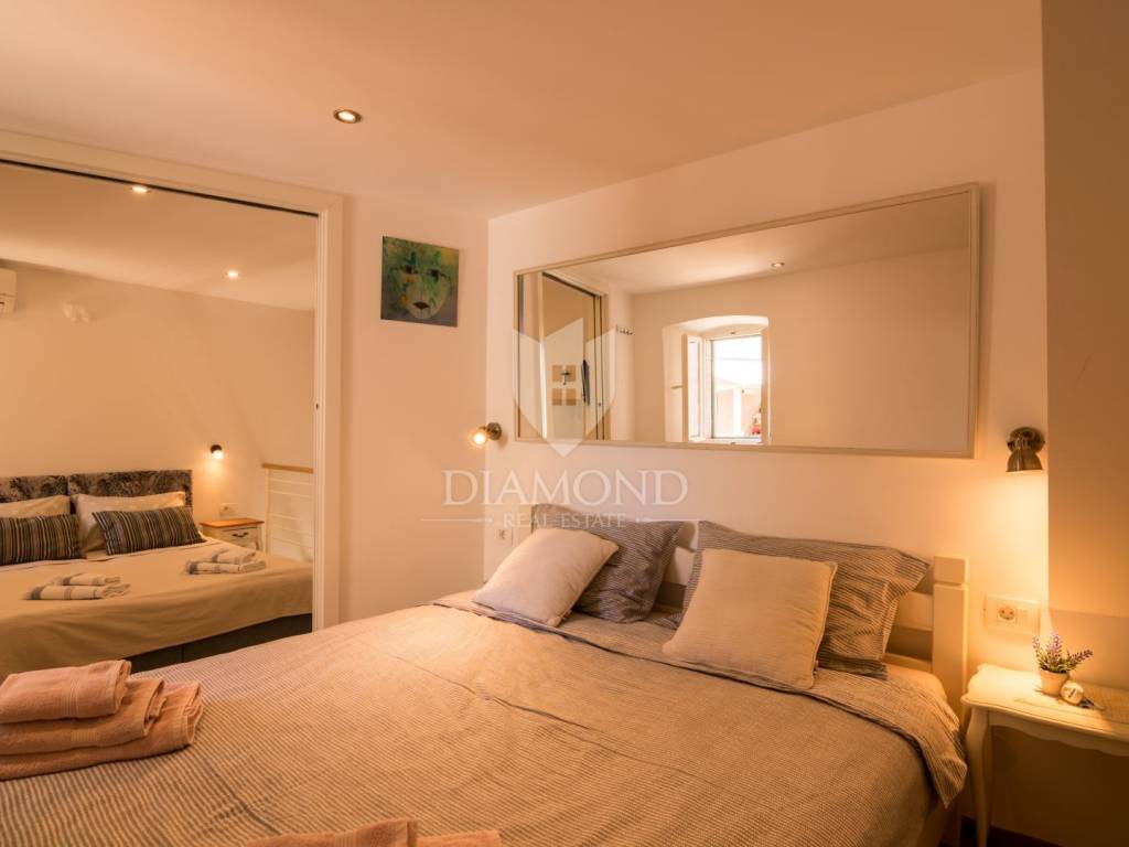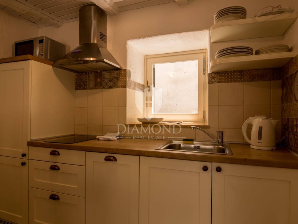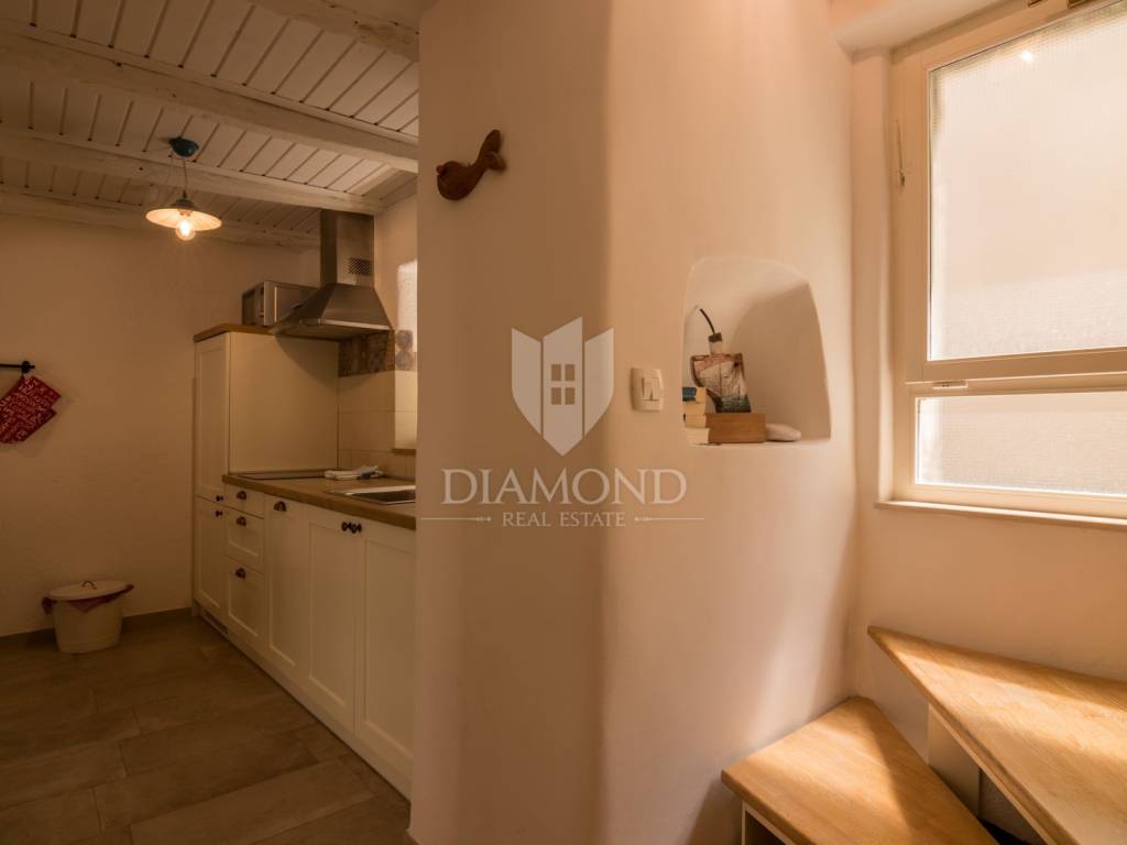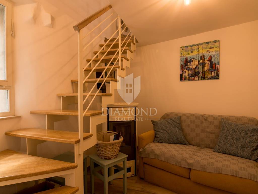 For sale is a beautiful rustically decorated apartment located in the very heart of the old town center of Mošćenice, an authentic Istrian town that exudes history, charm and tranquility. This 47 square meter property is ideal for those looking for a combination of tradition, comfort and a Mediterranean lifestyle. The apartment consists of two rooms that exude warmth and character, thanks to carefully selected rustic details, wooden ceiling beams, stone elements and antique charm of the decoration. The living room, dining room and kitchen are connected into a functional unit, creating a pleasant atmosphere for everyday life or relaxation during a vacation. The bathroom is fully furnished and equipped with all necessary amenities. A special value is given by the spacious terrace, perfect for morning coffee, enjoying sunsets or socializing in the fresh air, with a view of the narrow, stone streets and rooftops of the old town. The apartment also has its own storage room, which is extremely practical for storing personal belongings or seasonal equipment. The apartment also has air conditioning, which ensures a comfortable temperature throughout the year. This property is perfect for all those who want to enjoy the peace, historical surroundings and natural beauty that Mošćenice offers, but also as an excellent investment for tourist rental, given the attractive location and authentic experience it offers. The distance from the sea and beaches is only a few minutes drive, and there are numerous promenades, cultural attractions and gastronomic facilities nearby. A rarity on the market - an apartment that combines history, charm and functionality, in one of the most beautiful places in Kvarner.