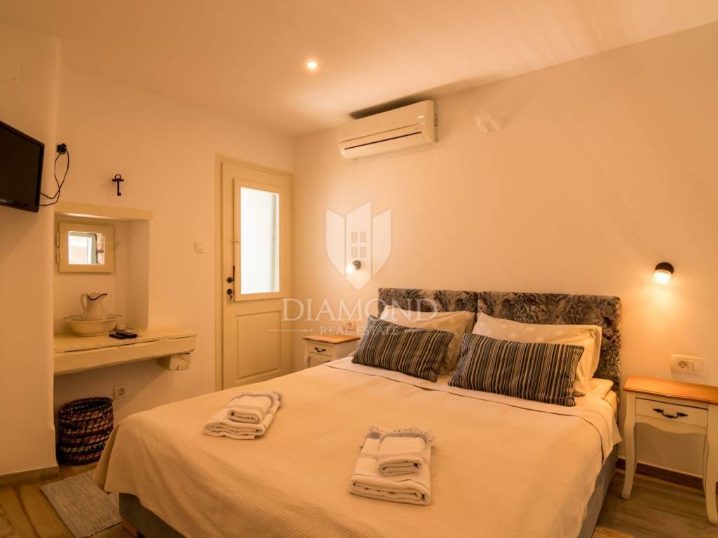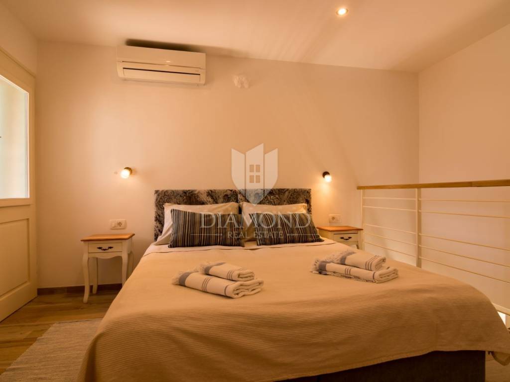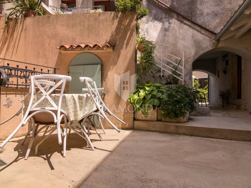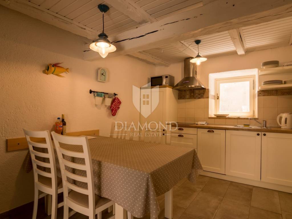 For sale is a beautiful rustically decorated apartment located in the very heart of the old town center of Mošćenice, an authentic Istrian town that exudes history, charm and tranquility. This 47 square meter property is ideal for those looking for a combination of tradition, comfort and a Mediterranean lifestyle. The apartment consists of two rooms that exude warmth and character, thanks to carefully selected rustic details, wooden ceiling beams, stone elements and antique charm of the decoration. The living room, dining room and kitchen are connected into a functional unit, creating a pleasant atmosphere for everyday life or relaxation during a vacation. The bathroom is fully furnished and equipped with all necessary amenities. A special value is given by the spacious terrace, perfect for morning coffee, enjoying sunsets or socializing in the fresh air, with a view of the narrow, stone streets and rooftops of the old town. The apartment also has its own storage room, which is extremely practical for storing personal belongings or seasonal equipment. The apartment also has air conditioning, which ensures a comfortable temperature throughout the year. This property is perfect for all those who want to enjoy the peace, historical surroundings and natural beauty that Mošćenice offers, but also as an excellent investment for tourist rental, given the attractive location and authentic experience it offers. The distance from the sea and beaches is only a few minutes drive, and there are numerous promenades, cultural attractions and gastronomic facilities nearby. A rarity on the market - an apartment that combines history, charm and functionality, in one of the most beautiful places in Kvarner.