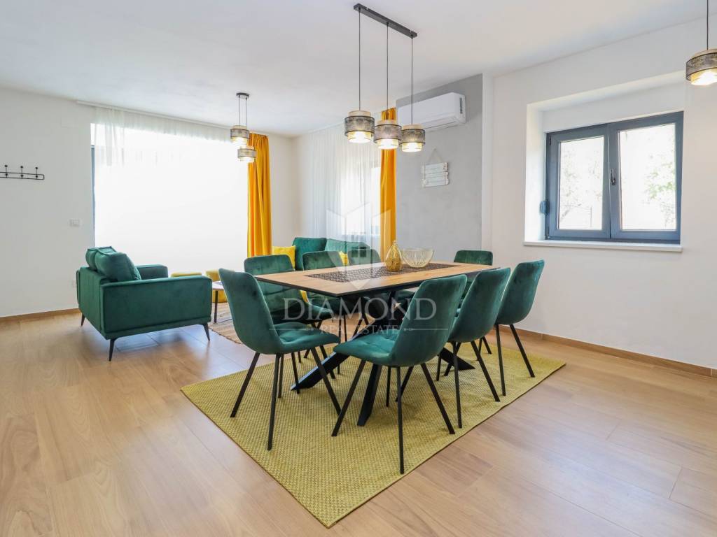 Just a few minutes from the center of Umag is this modernly decorated house with a total area of 135 m², spread over three floors.