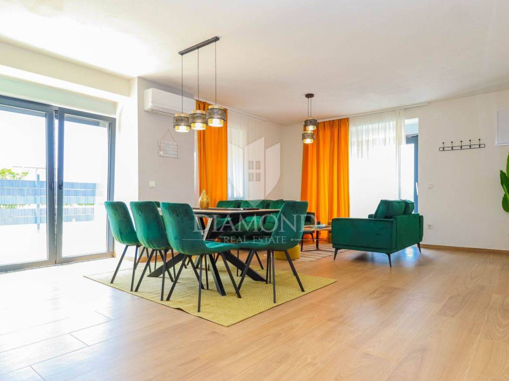 Just a few minutes from the center of Umag is this modernly decorated house with a total area of 135 m², spread over three floors.