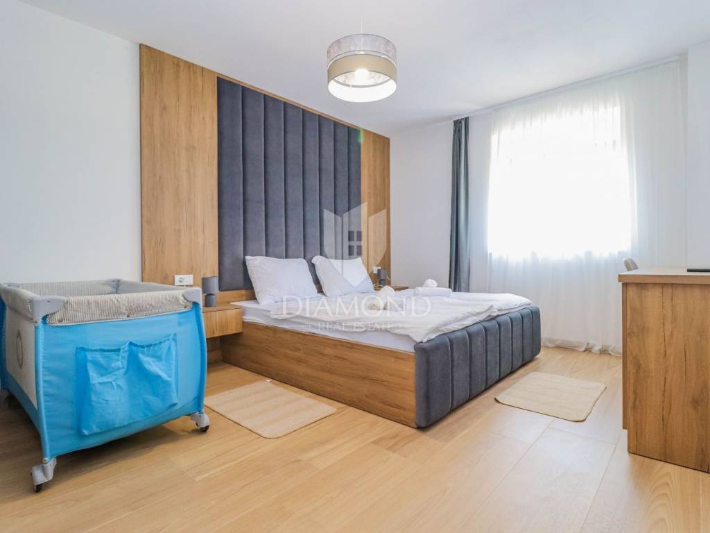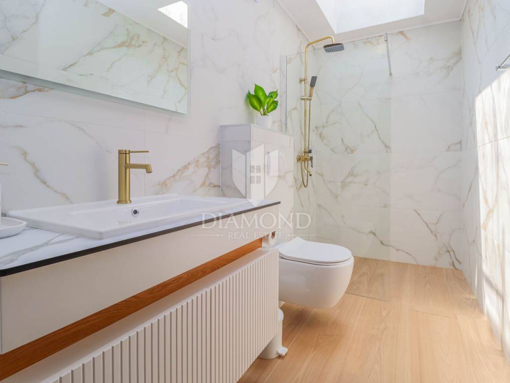 On the ground floor there is a spacious living room with an open-plan dining room and kitchen, a guest toilet and a practical storage room. The living room opens onto a beautifully decorated garden that provides additional space for enjoying the outdoors. On the first floor there are two bedrooms, each with its own bathroom, while on the second floor there are two more bedrooms and two bathrooms. When decorating the house, special attention was paid to details, which achieved a harmonious blend of functionality and aesthetics, with a dose of modern charm. All bathrooms, as well as the living room and kitchen, have underfloor heating, while the bedrooms are equipped with air conditioning units that ensure a pleasant temperature throughout the year. Each room has its own air conditioning unit, ensuring efficient heating and cooling.