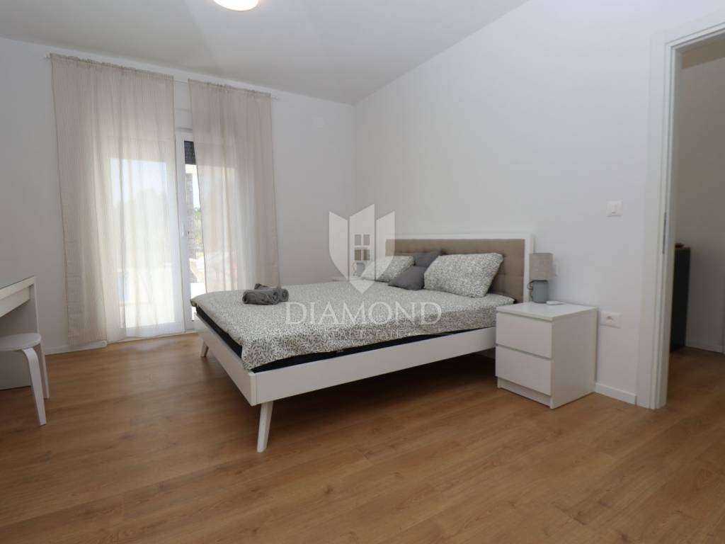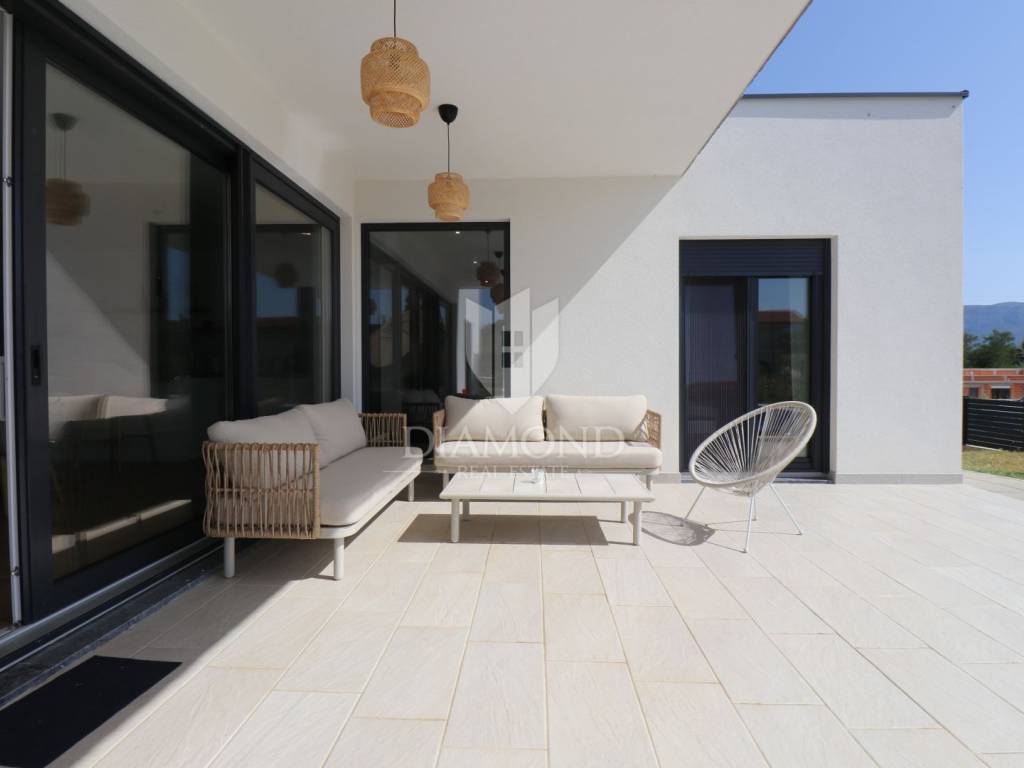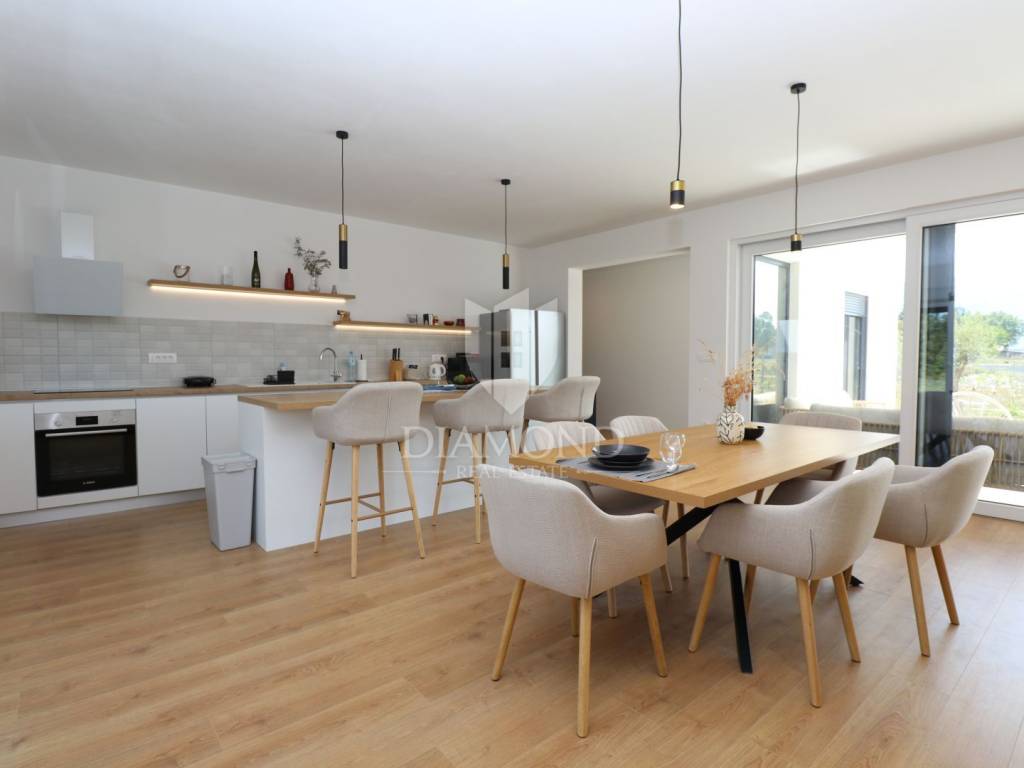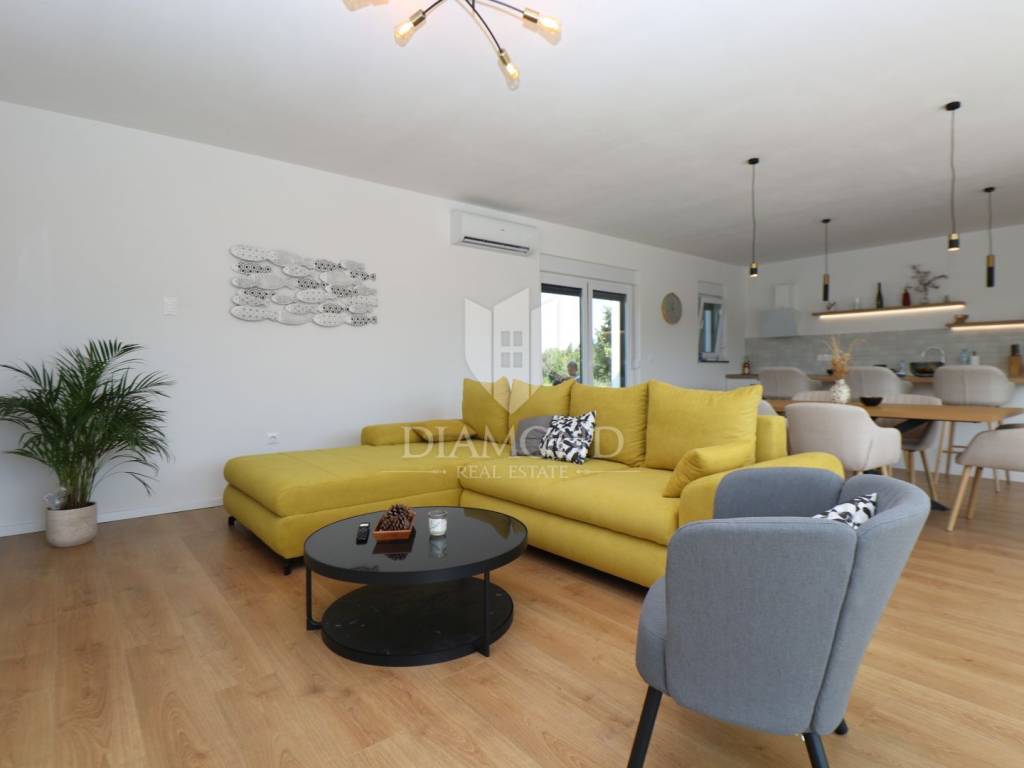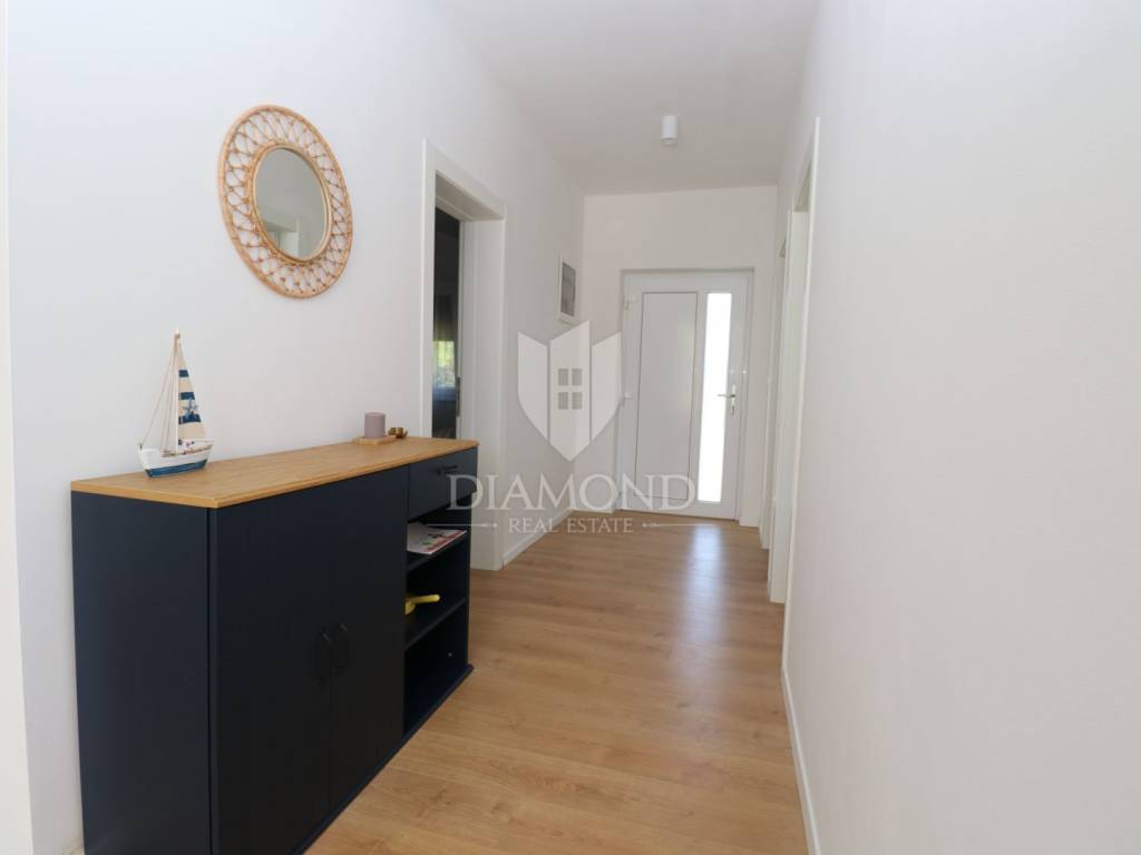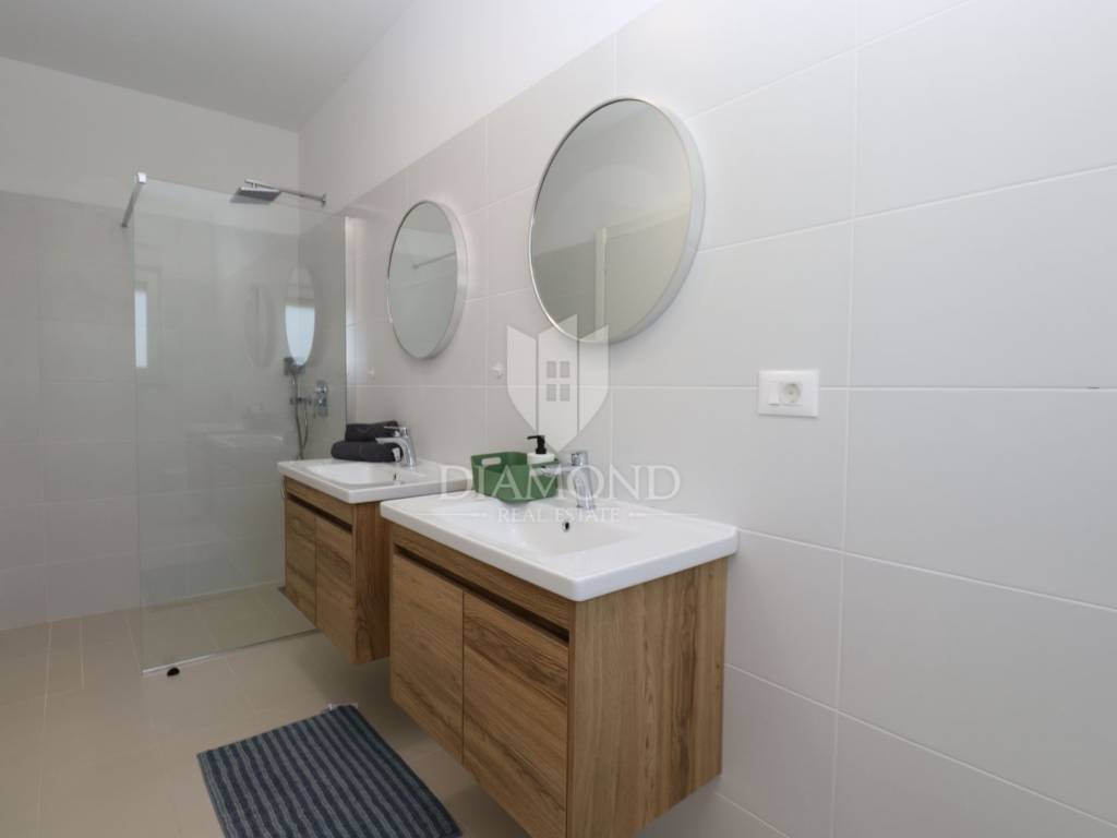 Labin, surroundings, new building with swimming pool surrounded by nature We are selling a modern new building located in a quiet neighborhood, ideal for a family oasis. This modern house offers the perfect combination of comfort and privacy, spread over a floor plan of 190 m², located on a spacious plot of 970 m². The interior of the house is designed with special attention to detail. The house contains three spacious bedrooms, each with its own modern bathroom, providing maximum comfort and privacy. An additional guest toilet is practically located for the comfort of your visitors. The central part of the house consists of an open space kitchen, which is connected to a spacious and bright living room. This space is perfect for family gatherings and entertainment, thanks to the large glass surfaces that provide plenty of natural light and a beautiful view of the garden. The outdoor area of this property is a true oasis of peace, ideal for relaxing and enjoying the outdoors. A special charm is provided by the heated pool, which allows swimming and recreation throughout the year. This house is built from the highest quality materials, with special emphasis on energy efficiency and durability. All bathrooms and the living room are equipped with underfloor heating, which provides additional comfort during the colder months, but also with air conditioners, which provides an optimal temperature throughout the year. The location in a quiet neighborhood provides privacy and security, and at the same time it is close to all the necessary facilities such as shops, schools and sports facilities. In addition to all these benefits, the house also has a spacious terrace, perfect for summer evenings and gatherings with family and friends. The private parking allows parking of several vehicles, which further adds to the practicality of this property. This exceptional property offers everything you need for a luxurious and comfortable life. For more information and to arrange a viewing, please contact us. Your new dream home is waiting for you!