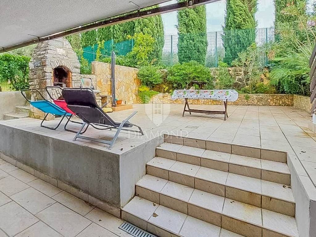 The house consists of 2 apartments, and the total area of the house is 146 m2. The first apartment is located on the ground floor and consists of a living room with a kitchen and a dining room, an additional smaller kitchen, 2 bedrooms, 2 bathrooms, a hallway and a storage room. Considering the layout of the rooms, if desired, this apartment can be made into 2 smaller apartments. From the back of the house there is a terrace with a fireplace and a place for grilling and enjoying the outdoors. The second apartment is located on the first floor, which is accessed by external stairs. This apartment consists of a living room with kitchen and dining room, 2 bedrooms, bathroom, hallway and 2 balconies. One balcony is accessed from the bedroom, and the other balcony is accessed from the living room. Heating is via a wood stove and cooling via air conditioners. A year ago, the carpentry and floors upstairs were changed. The house has a fenced and landscaped garden area of 71 m2. One part of the garden is at the front and the other at the back of the house. The house also has 2 storage rooms, and the parking lot is right next to the house.