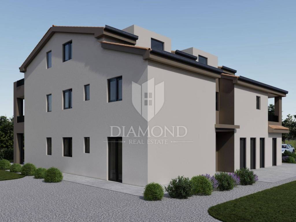 PENTHOUSE near Poreč In the vicinity of the city of Poreč, of a total of five apartments in a residential building, this fantastic PENTHAUS is for sale. The apartment has a total of 130,12 m2 together with a storage room and consists of a living room, dining room, kitchen, three bedrooms and two bathrooms. From the living room there is access to the terrace. The apartment also has a parking space in front of the building. The apartment is heated via air conditioning and underfloor heating in the bathroom, which has its own thermostat. Its specialty is that the building is built of high-quality building materials and is equipped with a complete communal infrastructure. Each residential unit is equipped with internal installations for connection to the telephone, terrestrial and satellite antenna, available in the living room and bedrooms. The building is located near the highway exit and is surrounded by typical Istrian houses. Shops, restaurants, school, kindergarten, nature are located near the place. The real estate is in the VAT system, and the amount is shown with VAT, so that the future owner does not pay additional tax on the transfer of the real estate. The apartment is sold turnkey system. Due to its location, this property is an ideal investment for both family life and tourist rental.