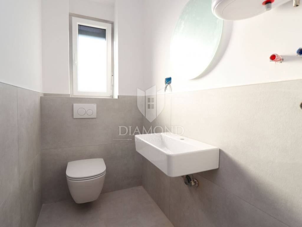 In a quiet and pleasant environment, just a ten-minute drive from Poreč and just a few minutes from the sea, a modern apartment in a smaller residential building is for sale. The location offers the perfect combination of peace, privacy and proximity to all the necessary amenities for a comfortable life. The apartment, with a total area of 70 m², has been carefully designed to provide maximum comfort and functionality. It consists of an open living room with kitchen and dining room, two bedrooms, bathroom, additional toilet and terrace. The building has an elevator that allows easy access for people of all generations, while two private parking spaces are included in the price. Electric underfloor heating is installed in the living room and bathroom, which further increases comfort during the colder months. This property is particularly valuable due to the quality construction carried out to the highest standards, using top-quality materials and attention to detail. For additional information and to arrange a viewing, contact us with confidence!