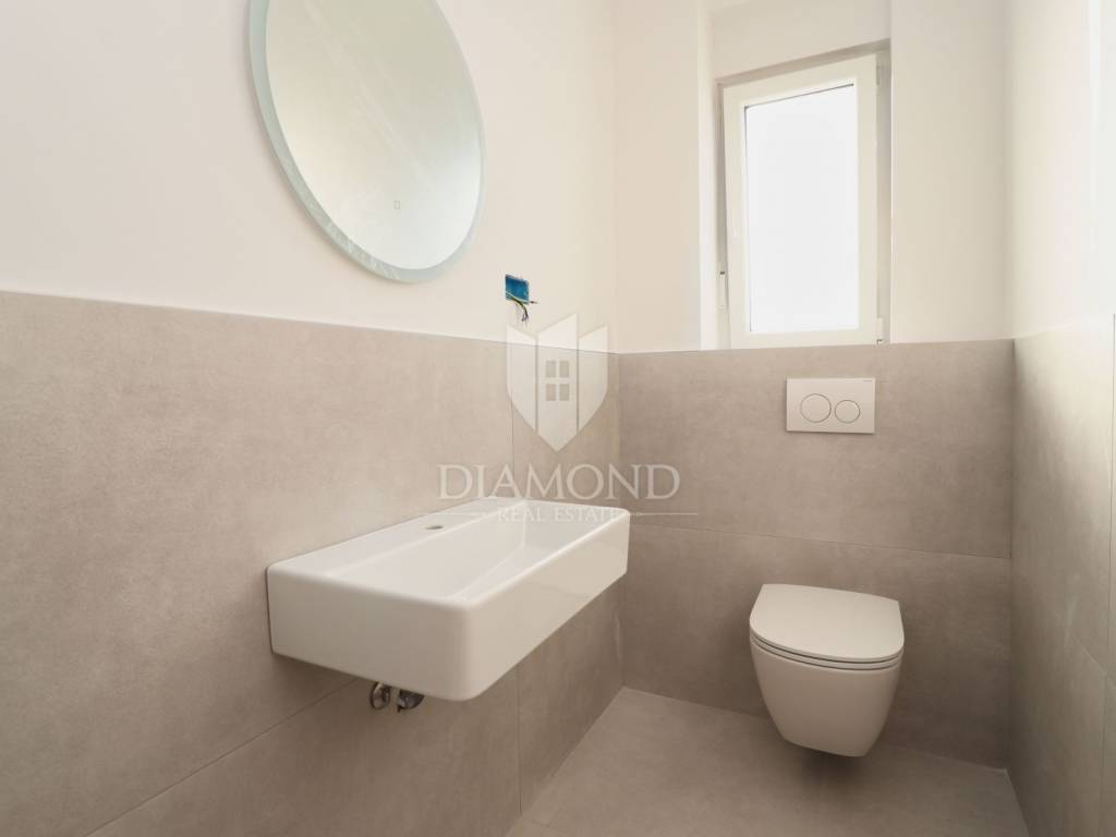 In a quiet and pleasant environment, just a ten-minute drive from Poreč and just a few minutes from the sea, a modern apartment in a smaller residential building is for sale. The location offers the perfect combination of peace, privacy and proximity to all the necessary amenities for a comfortable life. The apartment, with a total area of 70 m², has been carefully designed to provide maximum comfort and functionality. It consists of an open living room with kitchen and dining room, two bedrooms, bathroom, additional toilet and terrace. The building has an elevator that allows easy access for people of all generations, while two private parking spaces are included in the price. Electric underfloor heating is installed in the living room and bathroom, which further increases comfort during the colder months. This property is particularly valuable due to the quality construction carried out to the highest standards, using top-quality materials and attention to detail. For additional information and to arrange a viewing, contact us with confidence!