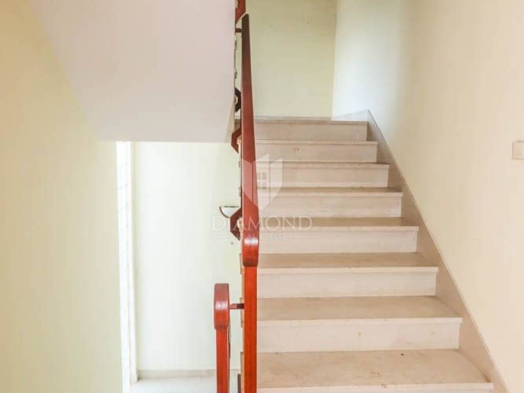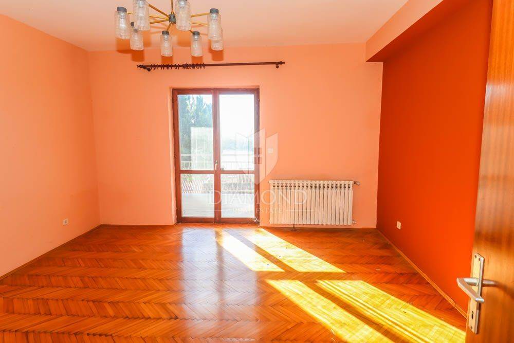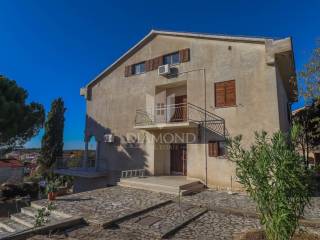 On the ground floor of the house there is a garage, storage room and boiler room. On the first floor, next to the kitchen and dining room, there is a laundry room, two bedrooms, a terrace and a bathroom with a separate toilet and shower. On the second floor there are four bedrooms and a spacious bathroom, as well as two terraces, both with a sea view. The attic apartment consists of three bedrooms, a kitchen, a toilet and a shower. Part of the garden near the house offers enough space for parking at least 9 vehicles.