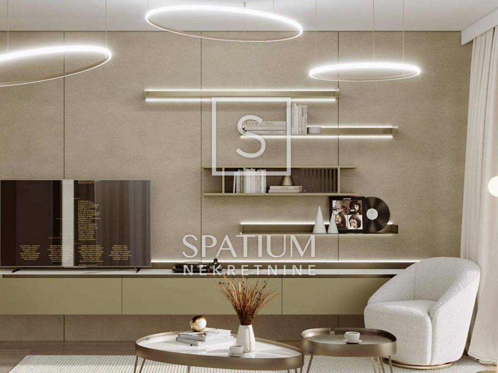 BIVIO, offers a modern two-bedroom apartment on the first floor of a new building, ideal for those looking for a high level of comfort, privacy and quality of construction. The apartment consists of two bedrooms and two bathrooms, and the layout of the space has been carefully designed to meet the needs of modern living. The main living area of the open floor plan shares the function of the kitchen, dining room and living room with access to the balcony. Most of the apartment is covered with high-quality parquet, while the bathrooms are equipped with first-class ceramics and Villeroy & Boch sanitary ware, which further emphasizes the refined character of the property.