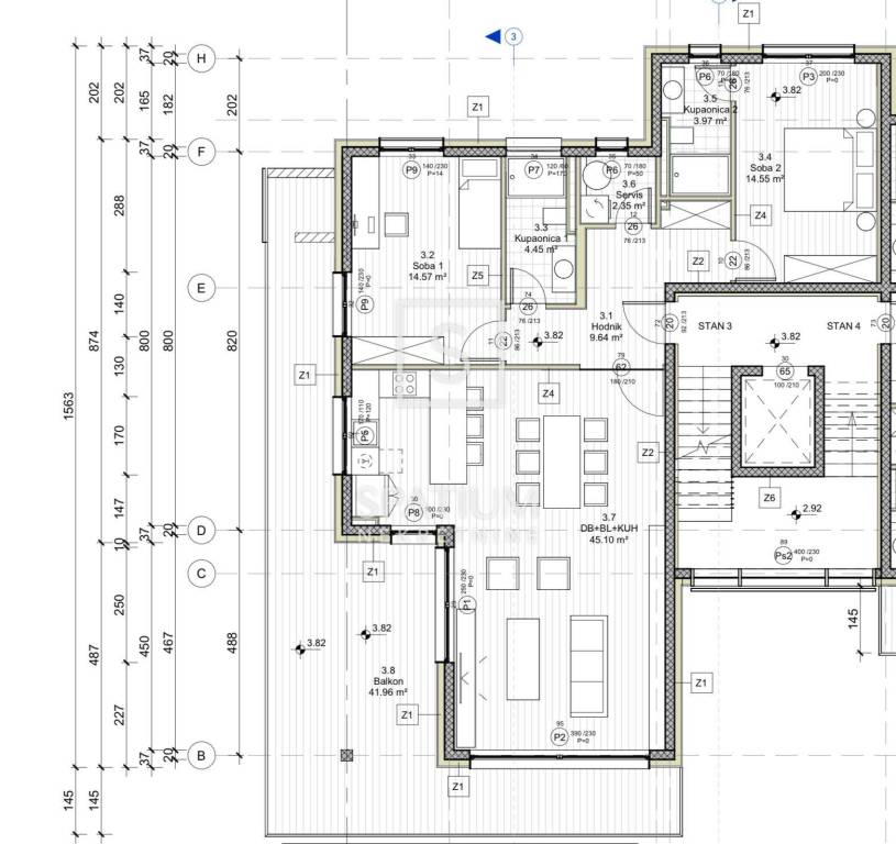The apartment also has a service room with custom-made built-in wardrobes. Technical equipment includes underfloor heating via a Daikin heat pump, aluminum joinery with electric blinds, Daikin air conditioning, a "smart home" system. The entire building is under video surveillance with an alarm system, which further contributes to the feeling of security. The apartment has two garage parking spaces, and in the garage there is an additional storage room, as well as a common room intended for a gym.