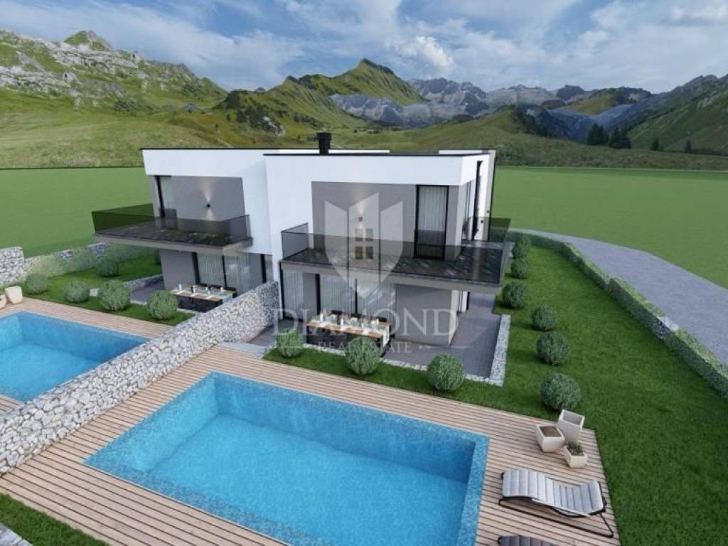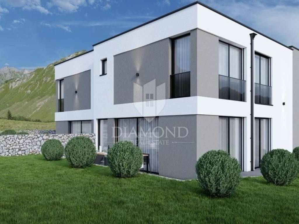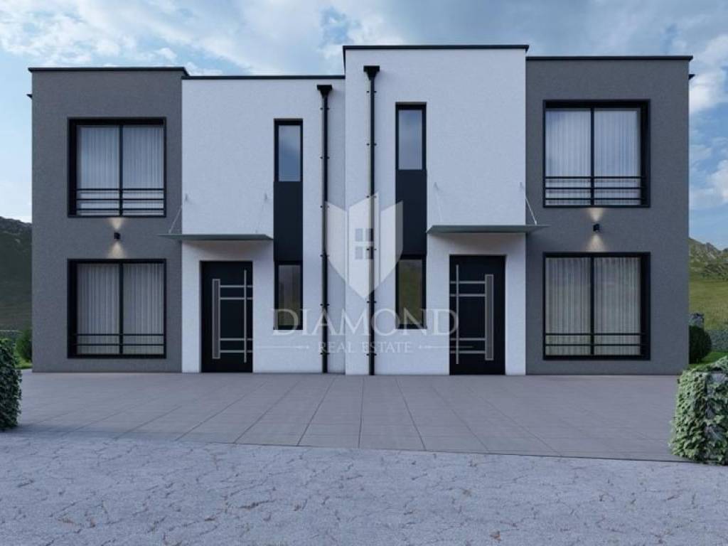 The house has a total area of 125 m2, and extends over two floors. On the ground floor there is a living room with an open kitchen and dining room, 1 bedroom, a bathroom and a storage room. From the living room you can access the terrace from which you can access the landscaped garden area of 280 m2, where there is a swimming pool, a sunbathing area and a parking lot. The first floor is accessed by an internal staircase where there are a bathroom and 3 bedrooms, one of which is a master bedroom with its own bathroom and terrace. The house is of modern construction with high-quality building materials. The carpentry will be PVC anthracite, the glass will be three-layered, and the floors will be made of ceramic with underfloor heating throughout the entire house and cooling with air conditioners. The house is sold completely decorated and furnished.