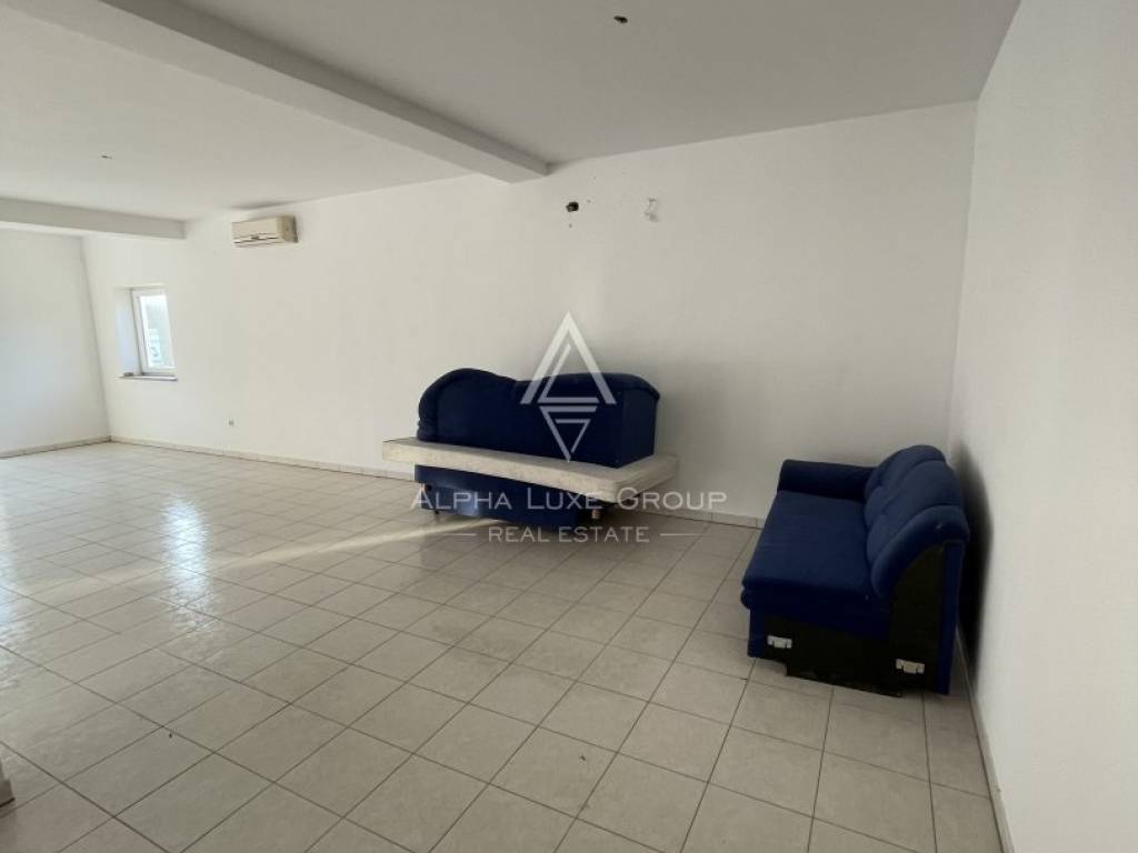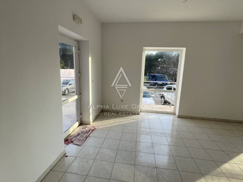 Poslovni prostor smješten je u prizemlju manje stambeno-poslovne zgrade i ima ukupnu površinu od 95 četvornih metara. Sastoji se od dvije funkcionalne prostorije: veće glavne prostorije s izlogom koja osigurava visoku vidljivost i obilje prirodnog svjetla te dodatne prostorije pogodne za skladište ili pomoćni prostor. Prostor uključuje i sanitarni čvor te manji hodnik, što dodatno doprinosi praktičnosti i učinkovitosti rada.