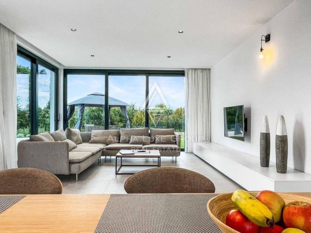 The villa is decorated with a large, beautifully landscaped Mediterranean garden, in which there is a heated pool of 50 m2 with a sun deck, a covered garden house with a barbecue, and several parking spaces. The garden is illuminated at night, creating a pleasant atmosphere.