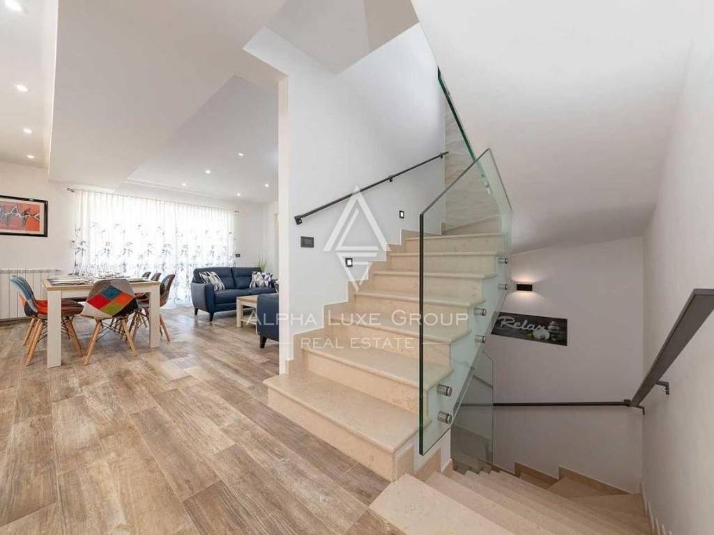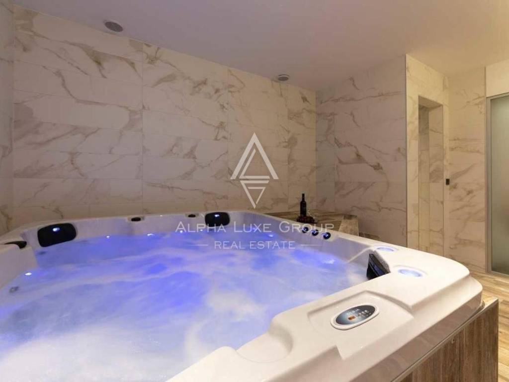 The yard is beautifully landscaped with a green lawn and Mediterranean plants. It has a pool of approx. 50 m2 with a hydromassage area and a summer kitchen with a covered terrace.