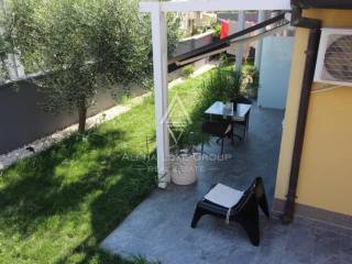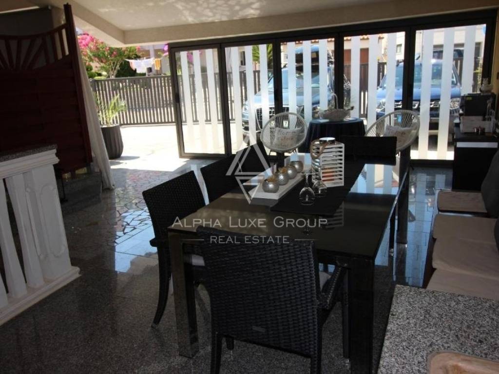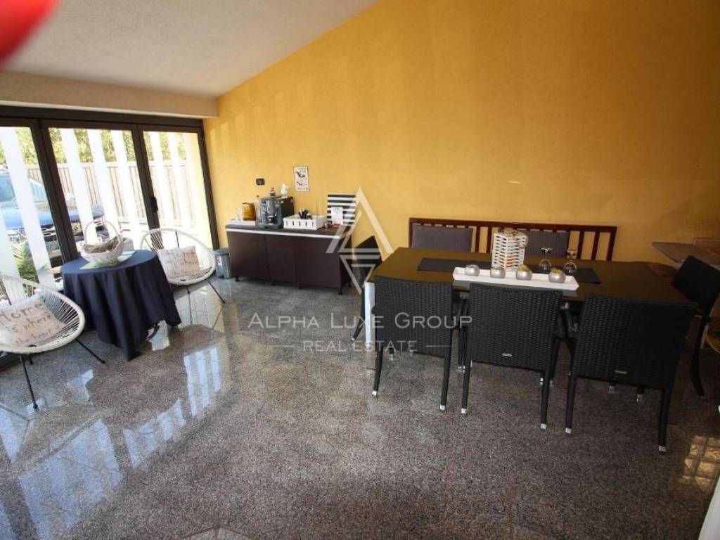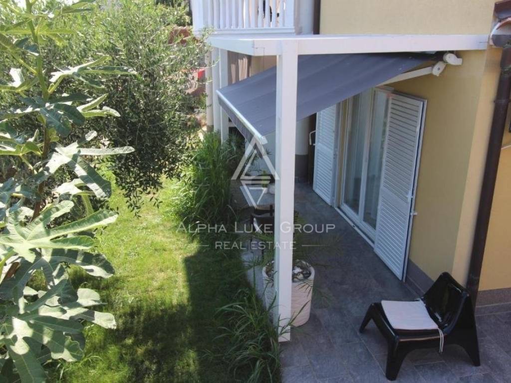 The villa also has a pub with BBQ facilities and a kitchen. The garden courtyard has seven parking spaces, and the ground-floor apartments have access to the garden.