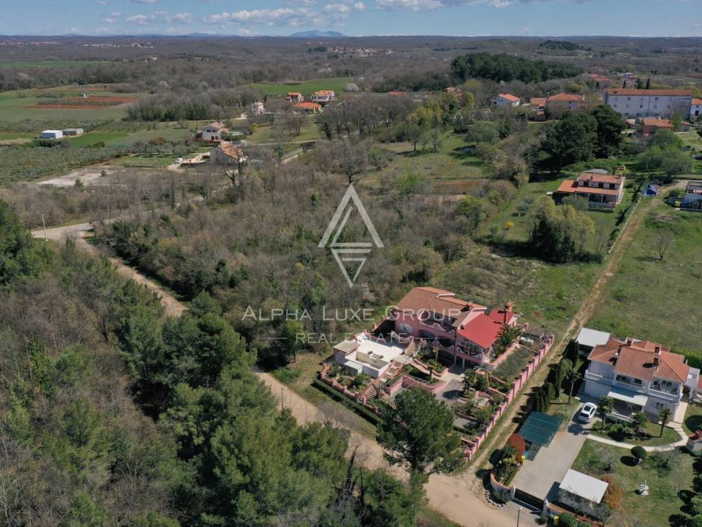 The villa is located in a beautiful quiet location only 3 km from the Green Lagoon Porec and 6 km from the center of Porec. It consists of a basement, ground floor, and first floor with a total of 360 m2 and 1200 m2 garden.