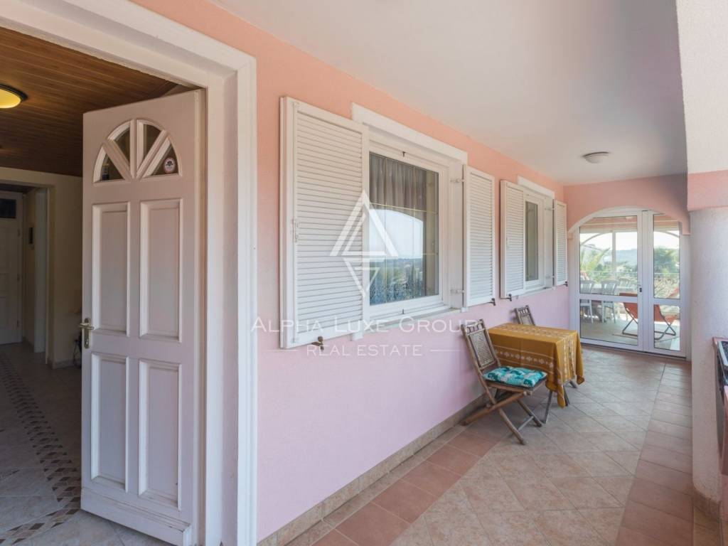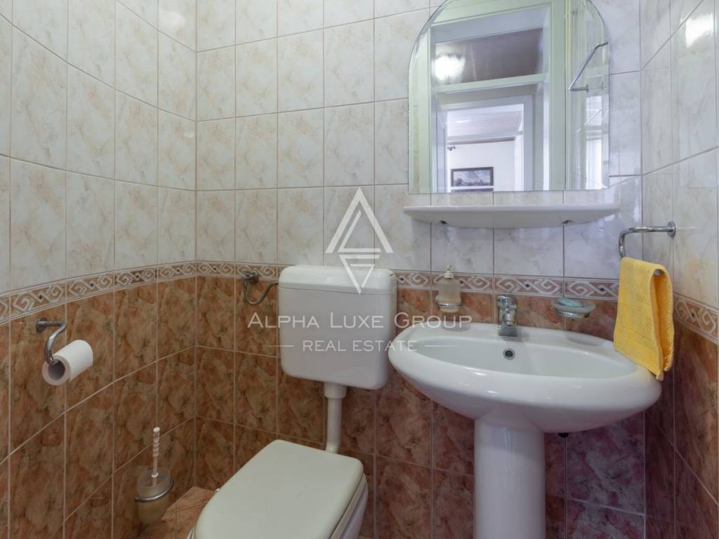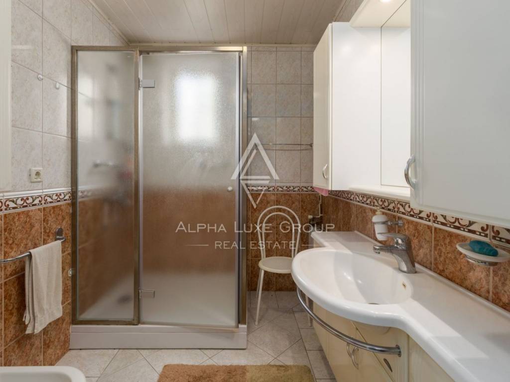 The high ground floor leads us to the living room and kitchen with a dining area which opens onto a spacious terrace - a winter garden where you can enjoy the summer and winter panoramic sea views. The ground floor contains two bedrooms, a bathroom with a toilet, a separate guest toilet, and storage.