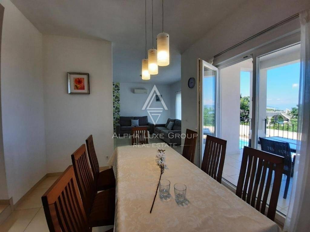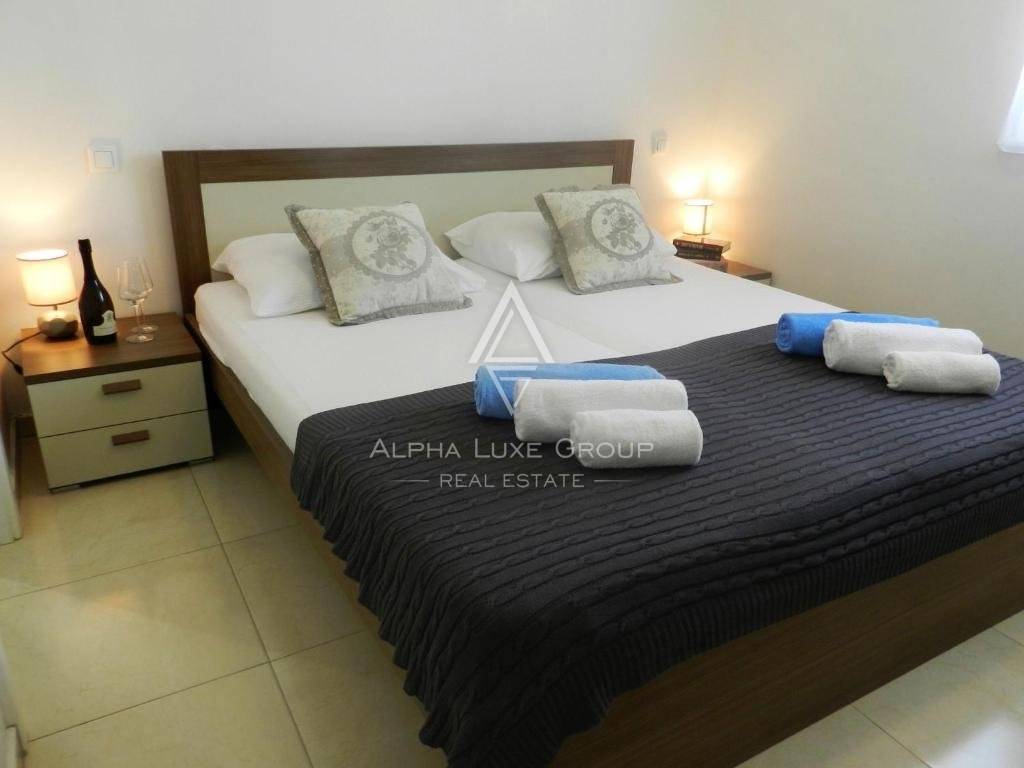 - On the ground floor, there is a well-equipped kitchen and dining area in the spacious living room. A single bedroom with a bathroom is located on the ground level, a separate bathroom (toilet) for guests, and an oversized covered patio overlooking the sea, yard, and pool.