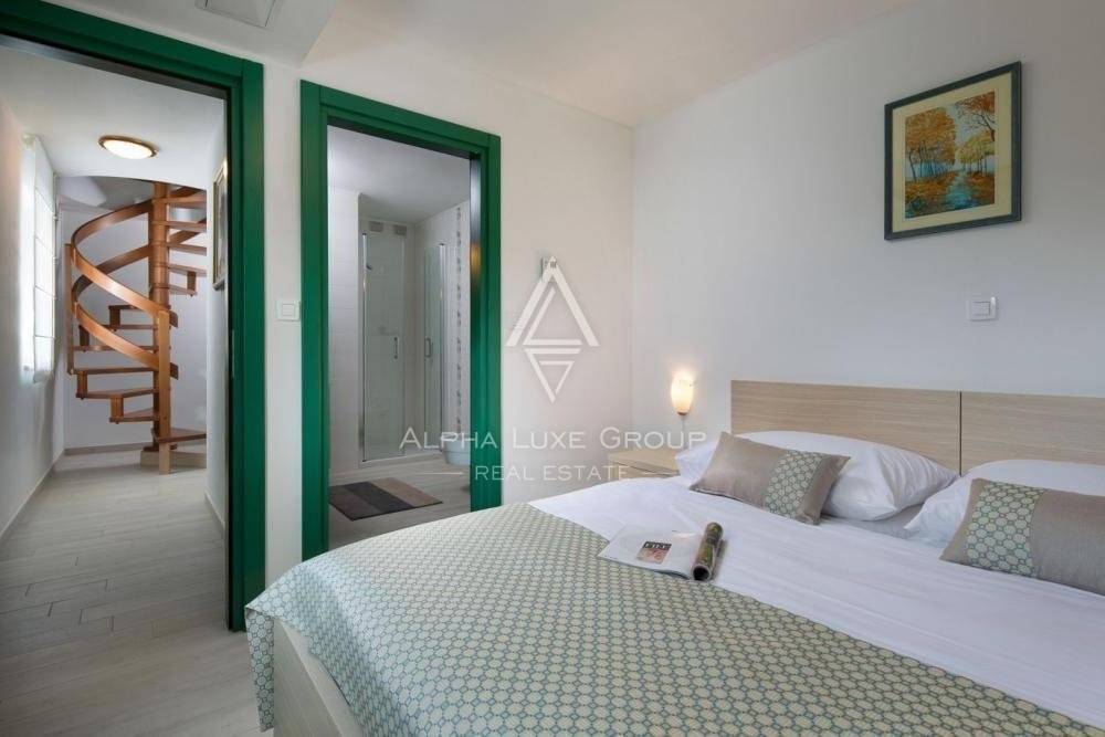 Dvije kuće imaju zajednički bazen od 25m2. Svaka kuća se sastoji od dnevnog boravka s kuhinjom i blagovaonicom, dvije spavaće sobe svaka sa svojom kupaonicom, te terase i balkona.