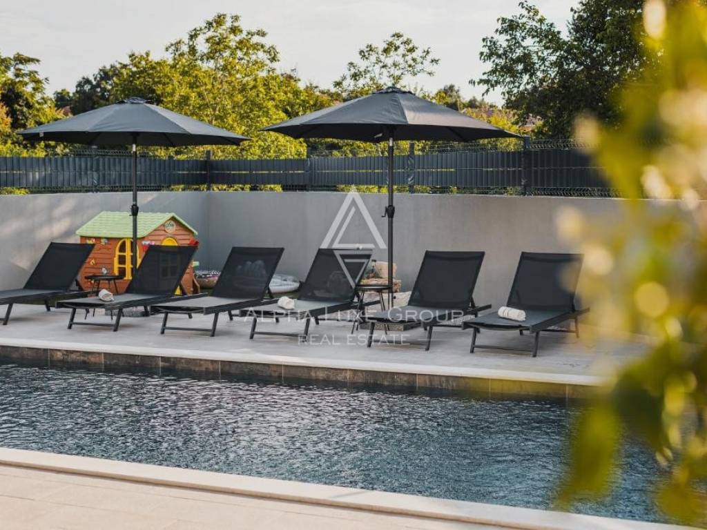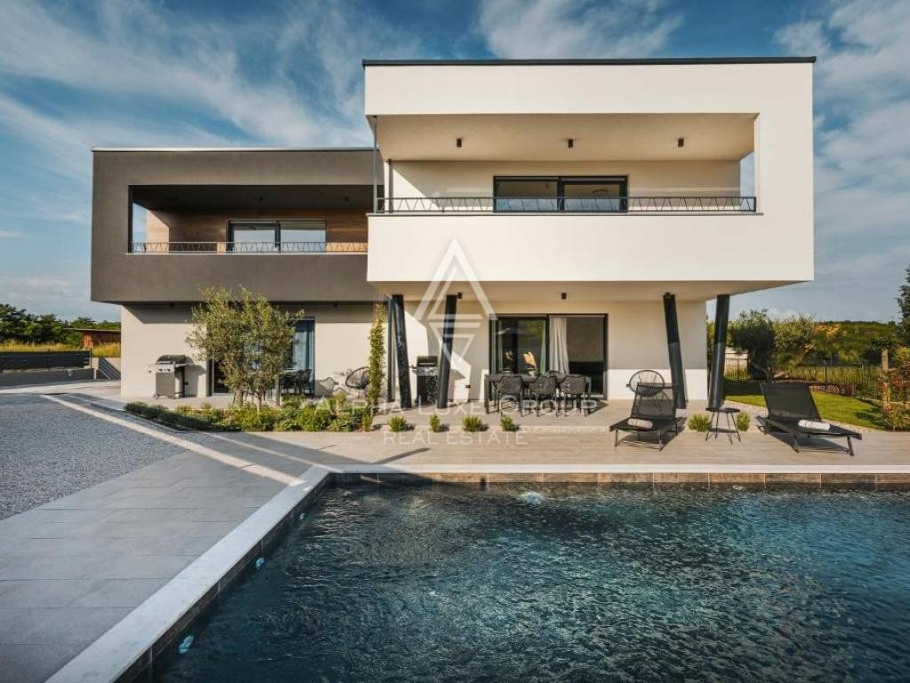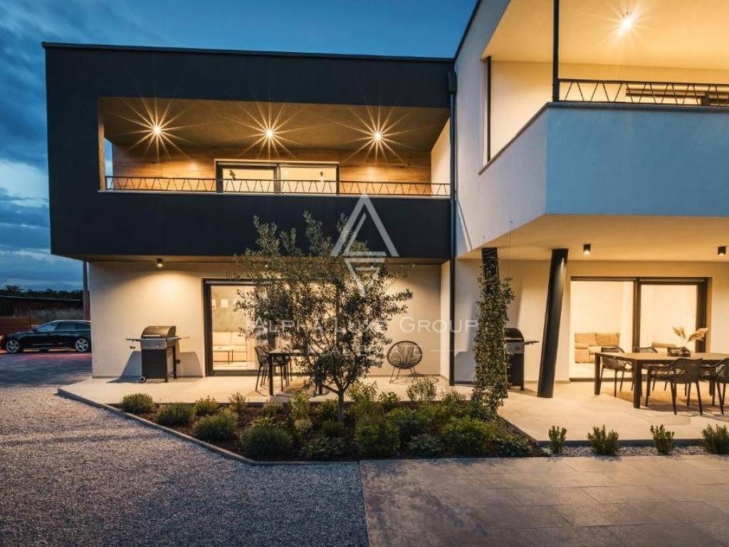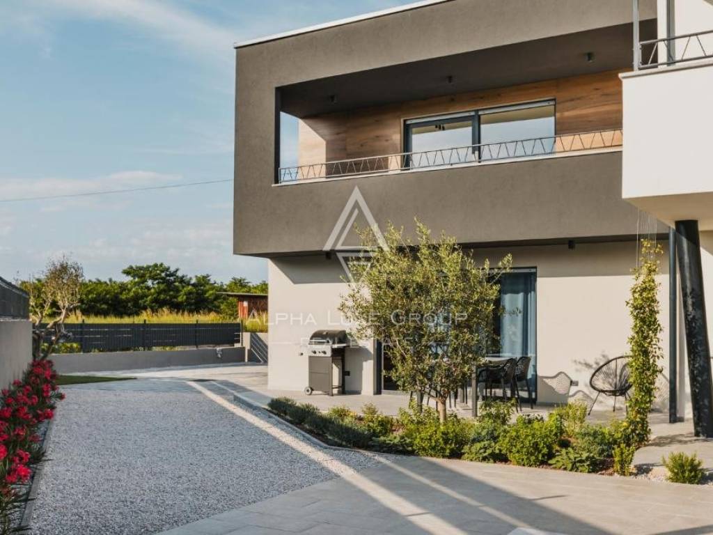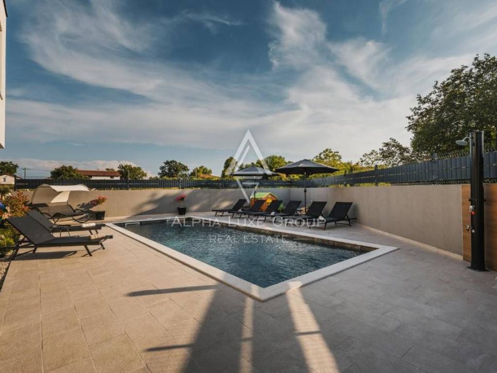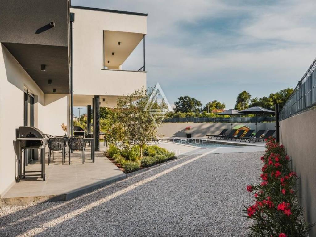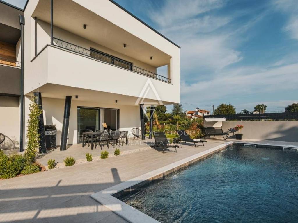 Located in a peaceful area near Umag, this modern detached villa offers exceptional comfort and versatility, perfect for living or investment. Set on an 862 m² plot, the villa spans 266 m² across two floors, featuring three separate residential units.