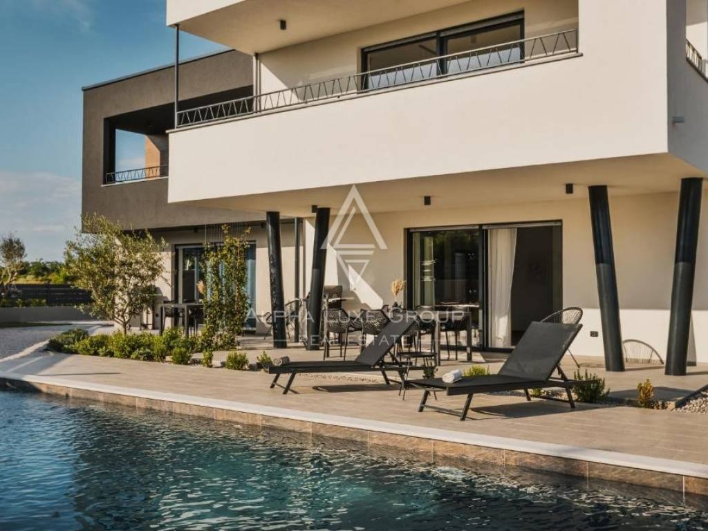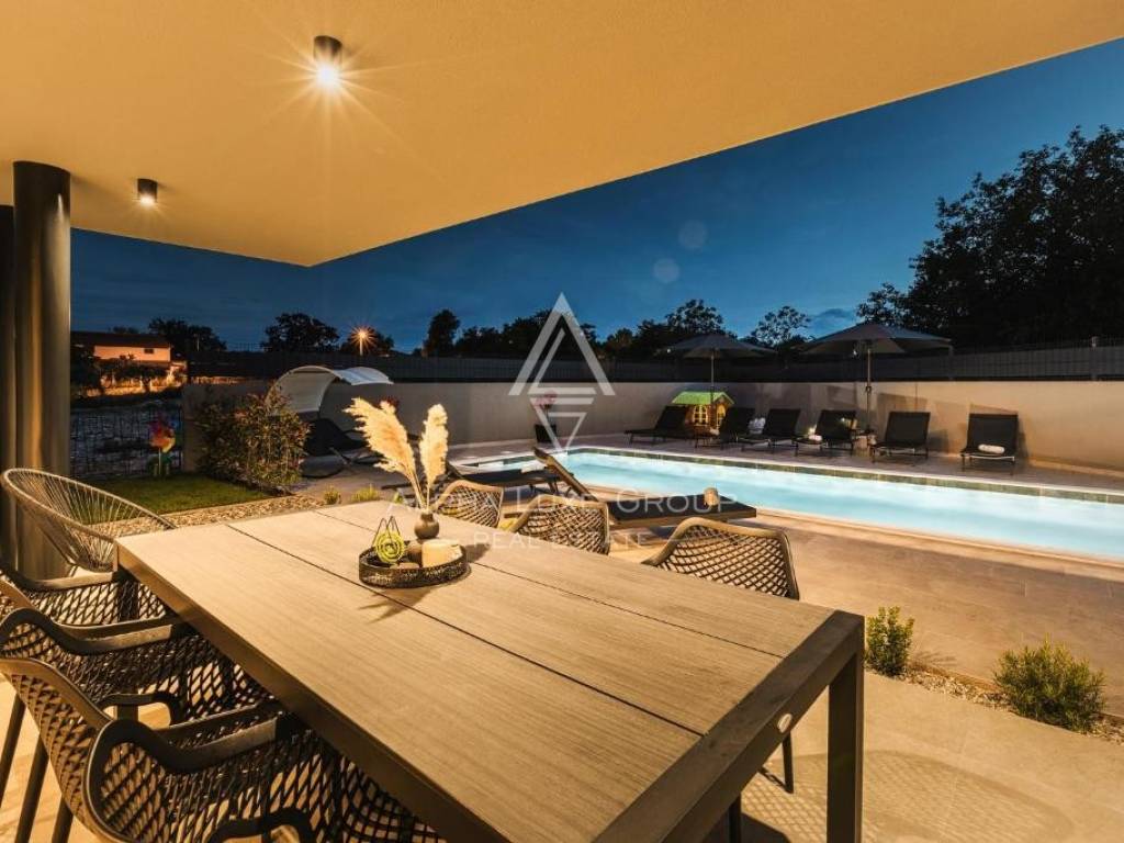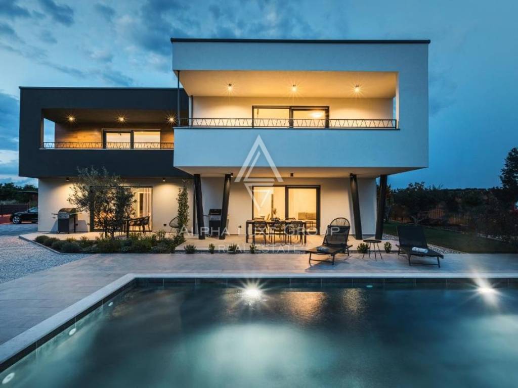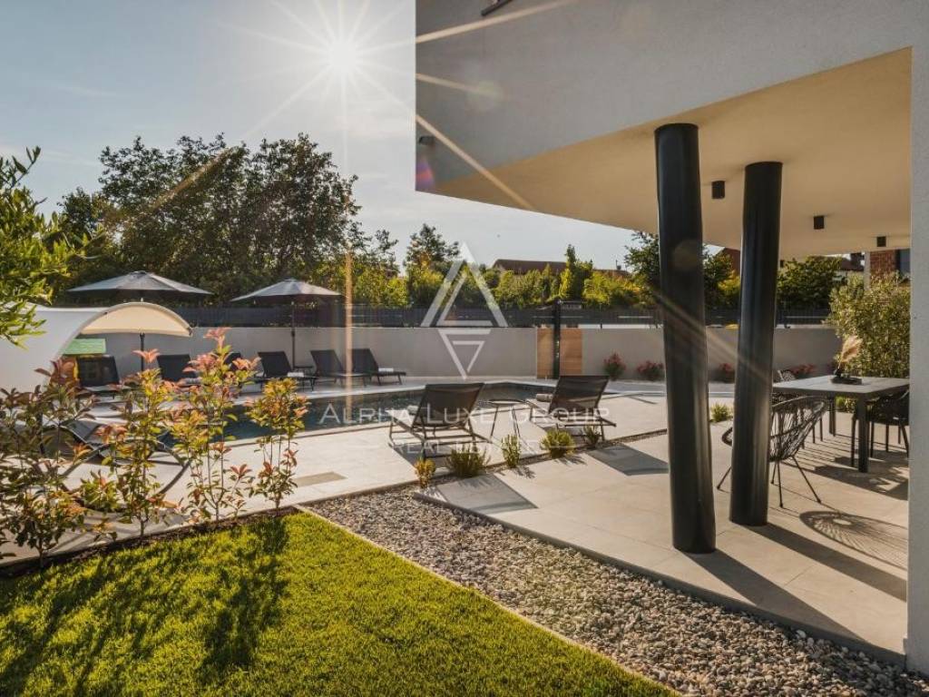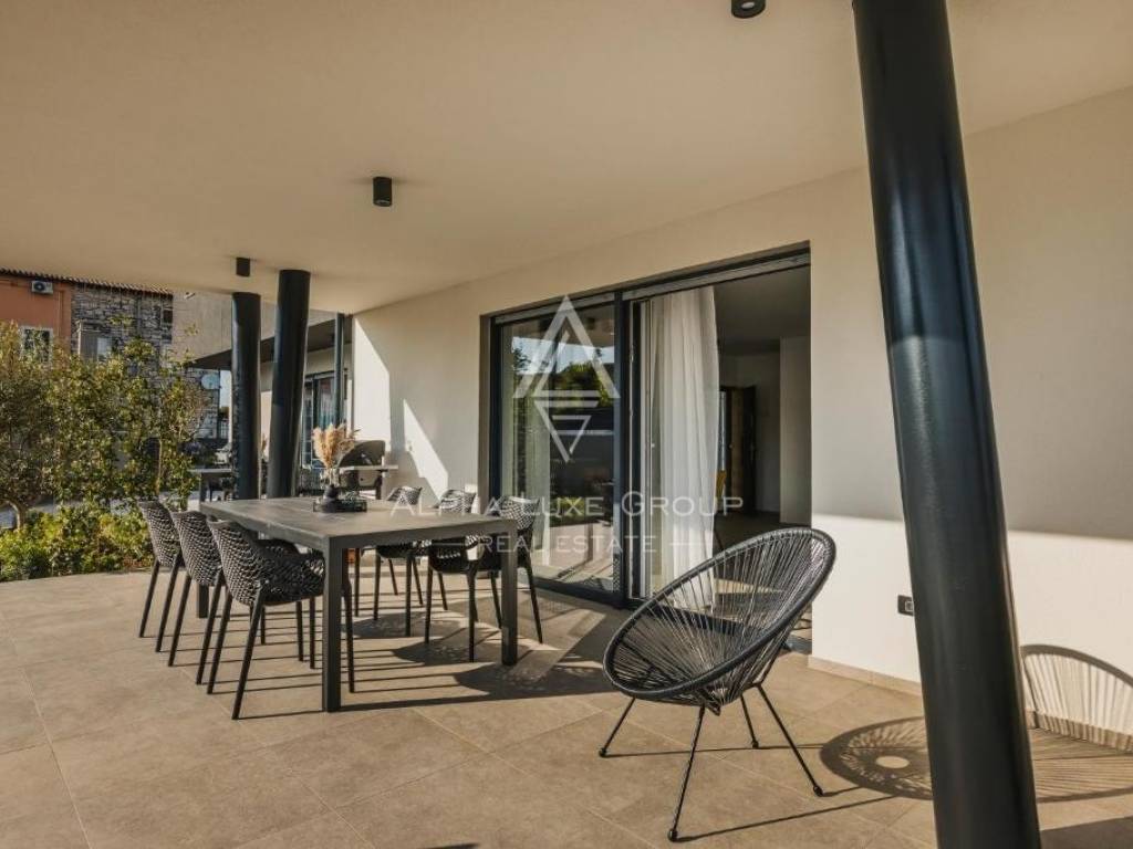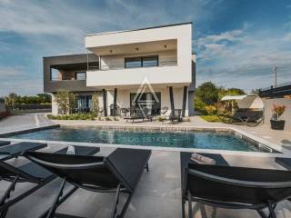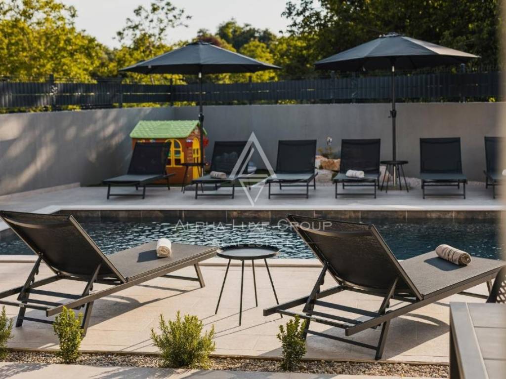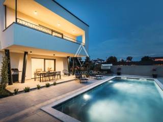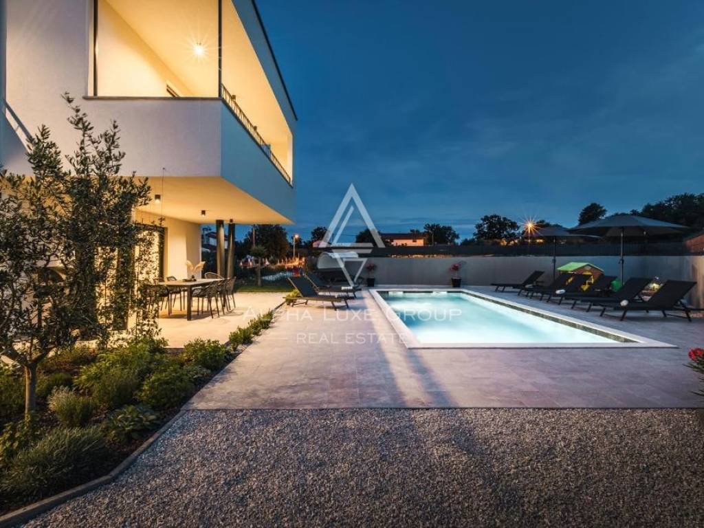 Located in a peaceful area near Umag, this modern detached villa offers exceptional comfort and versatility, perfect for living or investment. Set on an 862 m² plot, the villa spans 266 m² across two floors, featuring three separate residential units.