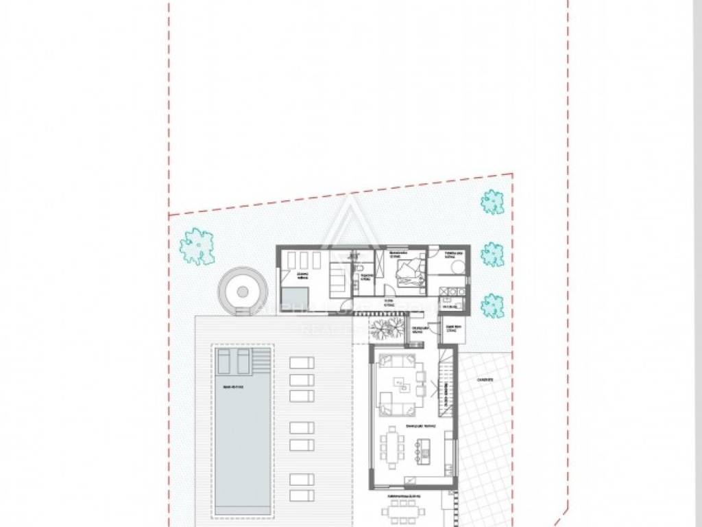 Additional amenities include a summer kitchen with a covered area, a fireplace, storage space, and an outdoor toilet, making outdoor entertainment effortless. The villa is equipped with underfloor heating, air conditioning in every room, high-quality ceramic tiles and parquet floors (customizable upon request), and exclusive bathroom fittings, setting a new standard for luxurious living.