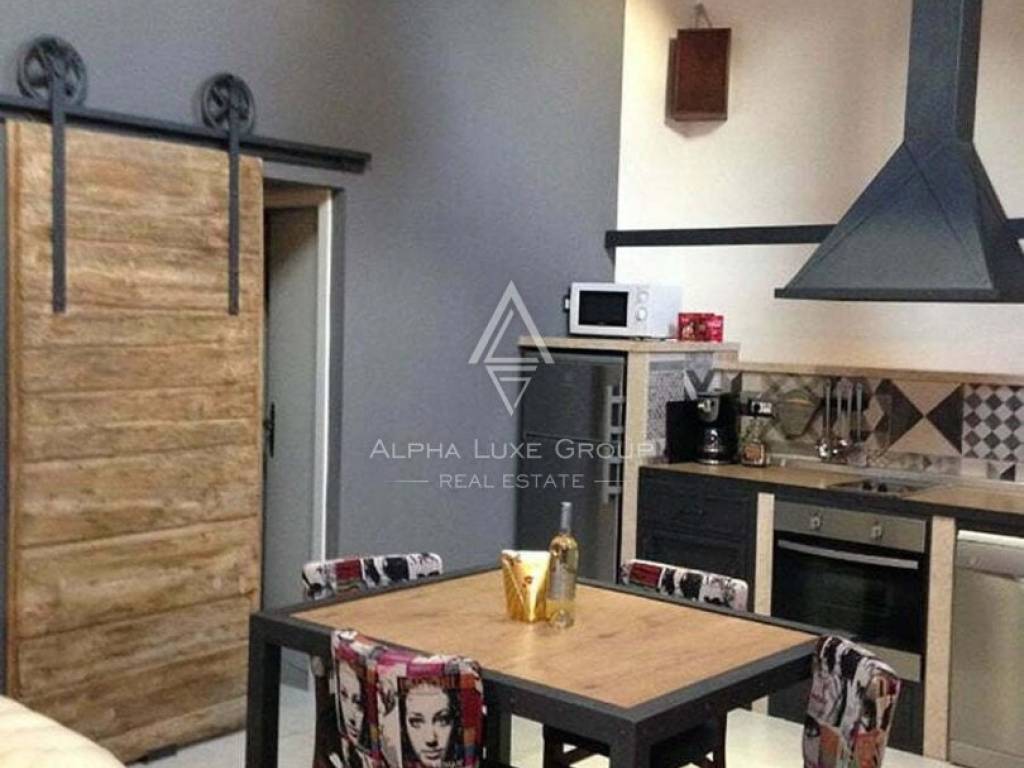 The ground floor features a stylish kitchen with a dining area, a cozy living room, and a bathroom. It also includes a covered terrace with a fireplace that opens to a private yard with a swimming pool, ideal for relaxation and entertaining. The basement houses two bedrooms, a bathroom, and an additional room that can be used as a wellness space, storage, or walk-in closet. The house is heated via electric radiators, with the added option of heating and cooling through air conditioning. Renovated in 2021, the property is being sold fully furnished, making it ready for immediate use.
