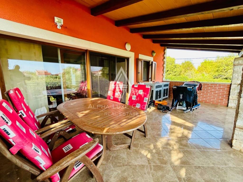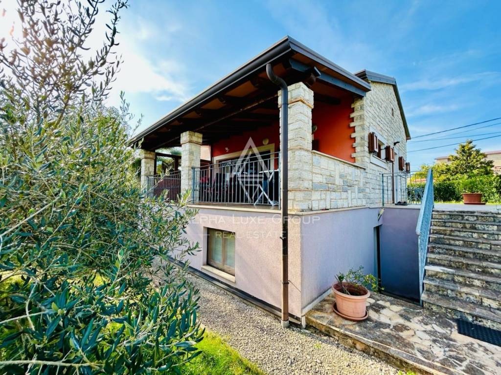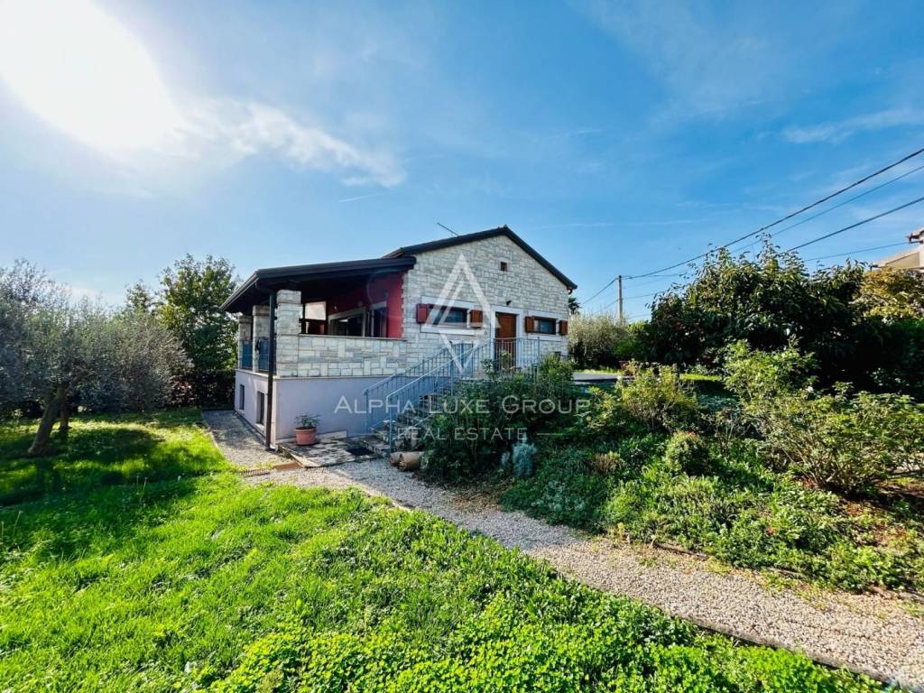 Located just 6 km from Poreč, this exceptional detached house combines the charm of Istrian design with natural beauty, creating an ideal retreat. The property spans 131 m² and features a thoughtfully designed layout with an entrance hall, a modern kitchen connected to a dining area, and an open-plan living room that opens onto a spacious covered terrace of 20 m². Additionally, the main level includes a bedroom, a smaller study or second bedroom, and a bathroom.