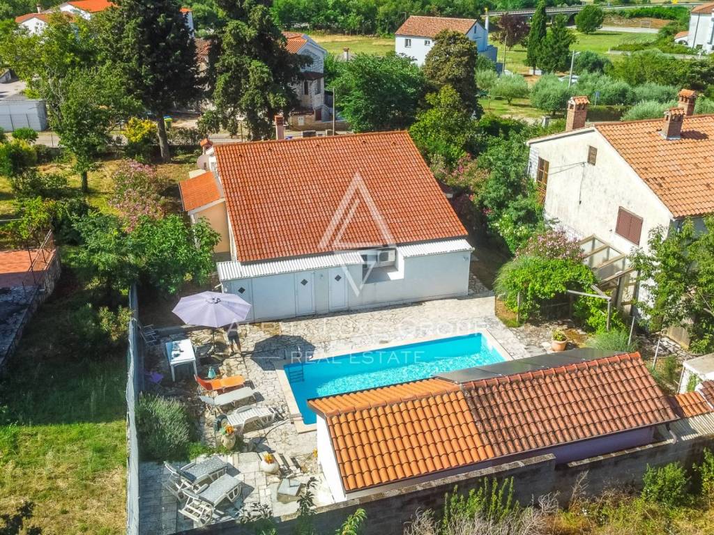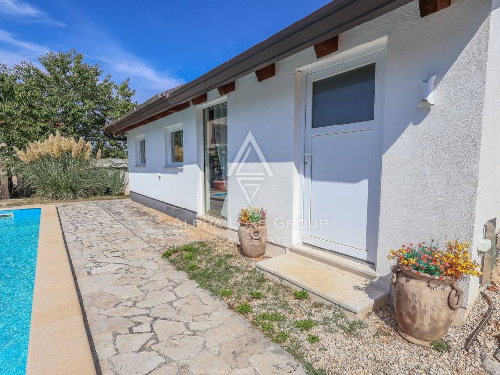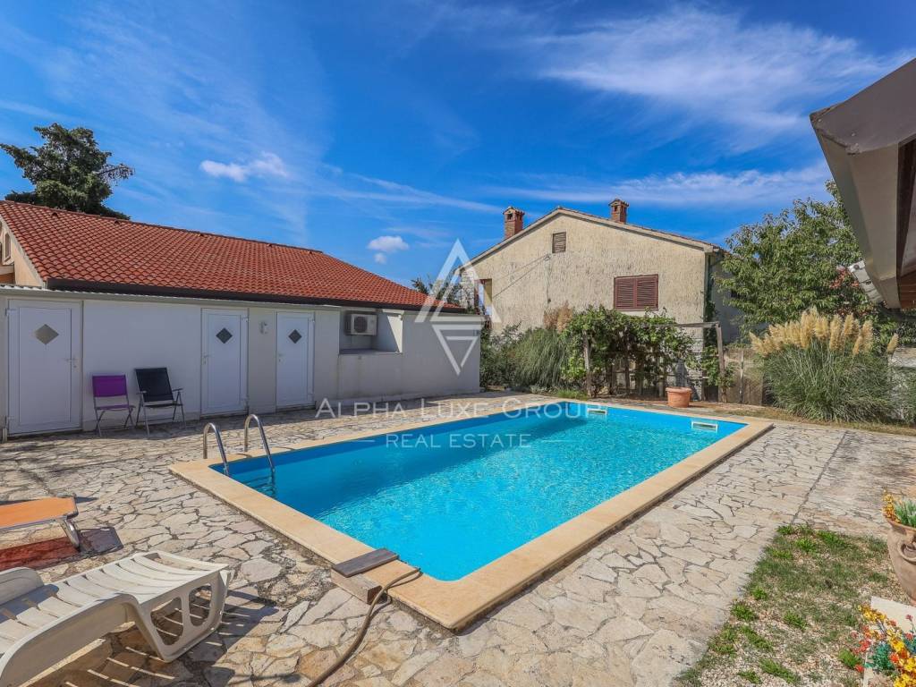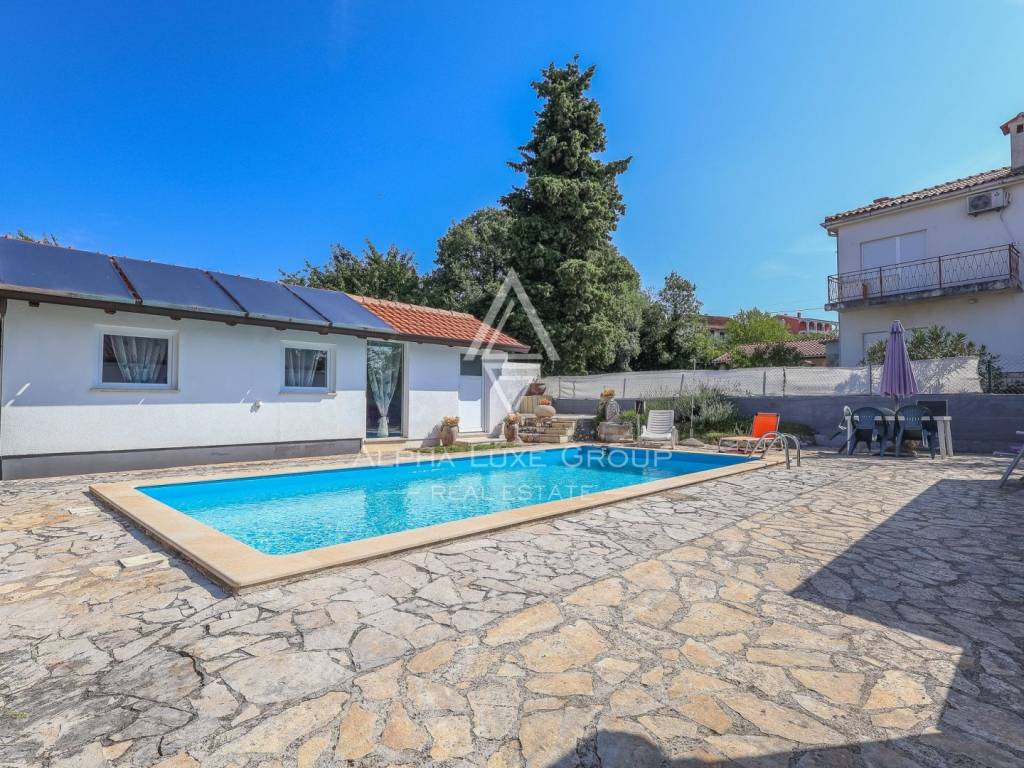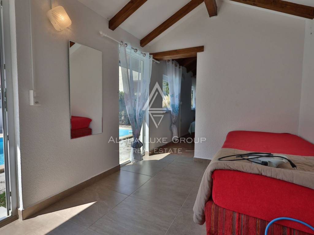 For sale – Spacious single-family house with swimming pool, additional apartment and sea view. A beautiful single-family house of 170 m2 with an additional studio apartment of 25 m2 is for sale, ideal for family life or tourist rental. The main house consists of: - 3 comfortable bedrooms. - 2 bathrooms. - Spacious living room - Fully equipped kitchen with pantry. - Terraces with sea view - Summer kitchens on the terrace, perfect for enjoying warm evenings. On the gallery there are 2 additional bedrooms, 1 bathroom. In the garden there is a 45 m2 swimming pool, ideal for relaxing and socializing. The studio apartment separate from the main house offers additional space for guests. Heating is provided by air conditioning and a pellet stove, which ensures a comfortable temperature throughout the year. A perfect property for living or investment, with lots of amenities.. For more information or to arrange a viewing, please feel free to contact us.
