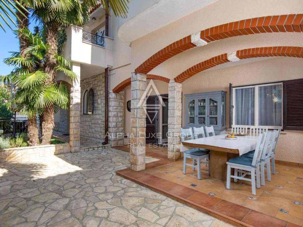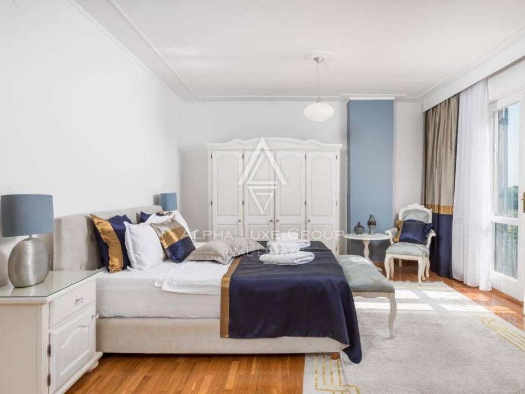 Set on an 892 m² plot, the villa spans 430 m² of living space distributed across 10 spacious rooms, including five elegant bedrooms and seven luxurious bathrooms. The interior has been tastefully designed to provide maximum functionality and comfort, ideal for family living or high-end tourism. Expansive windows flood the home with natural light, seamlessly connecting indoor spaces with the beautiful outdoor area.