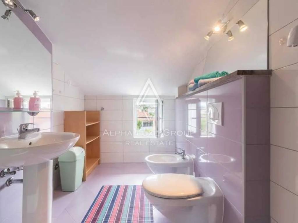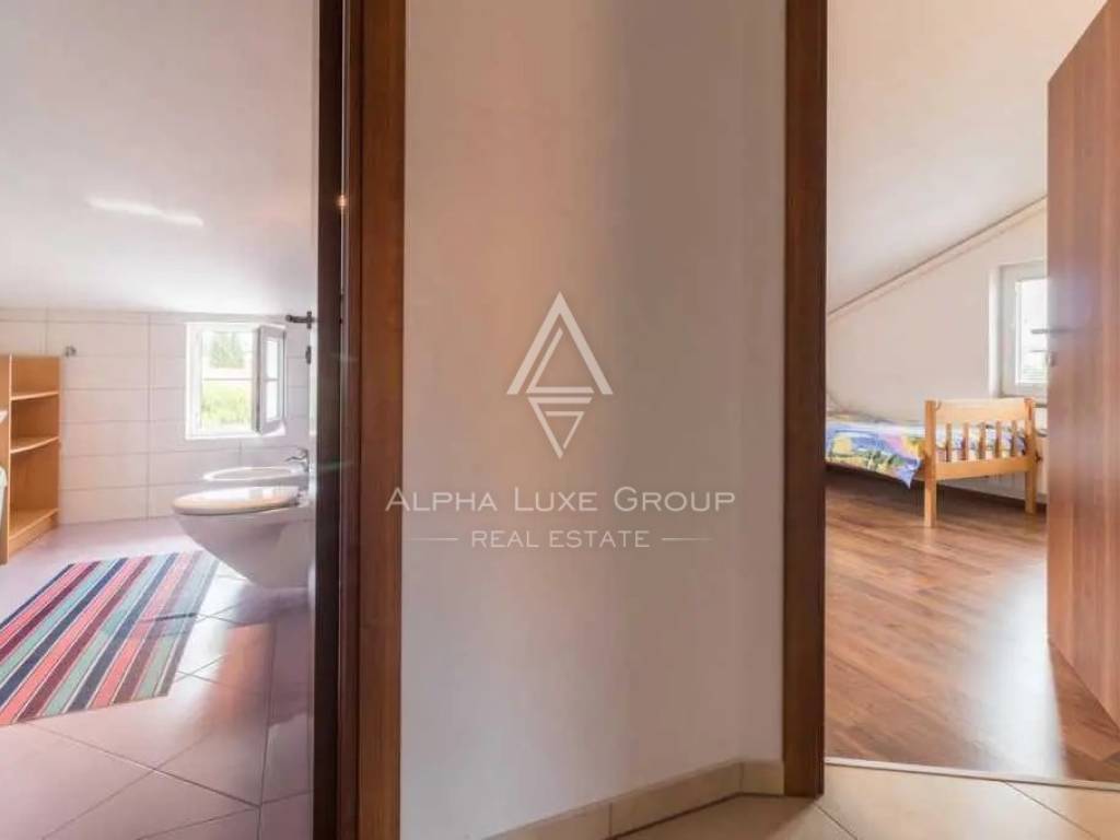 The upper level includes two larger duplex apartments. Each features a living room with balcony access, a kitchen, a bathroom and one bedroom on the first floor. The high attic of the first duplex includes four additional bedrooms and another bathroom, while the second duplex offers three bedrooms and one bathroom on its upper floor. This structure provides excellent flexibility for larger families or multi unit rental strategies.