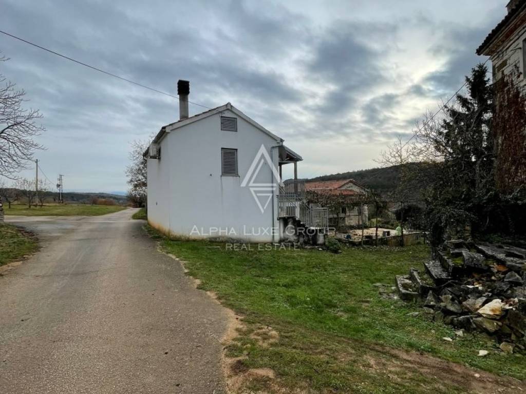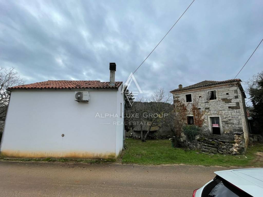 Just 2 km before Oprtalj, this property presents a rare opportunity to acquire a traditional Istrian stone estate consisting of two houses and additional building land. The main stone house of 250 m² is ready for full renovation, offering an excellent foundation for creating a unique home or investment project. On the same plot, an independent 82 m² house is immediately suitable for living with a kitchen, living area and bathroom on the ground floor, while the upper floor includes two bedrooms and a spacious terrace overlooking the surrounding nature.