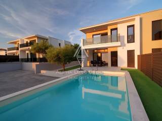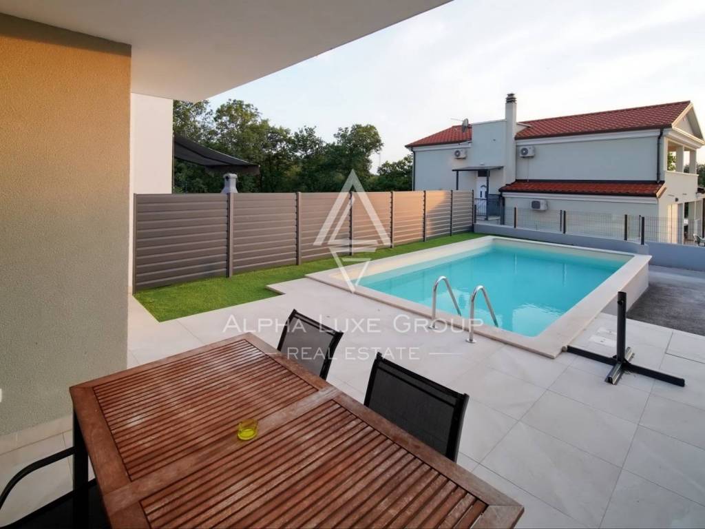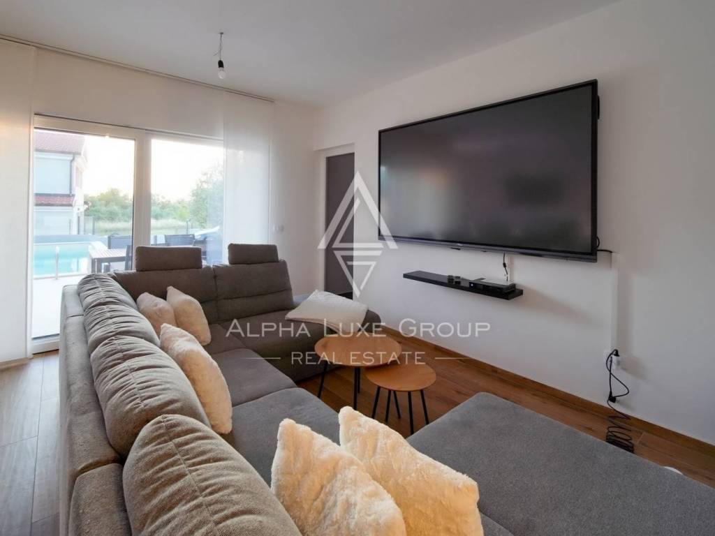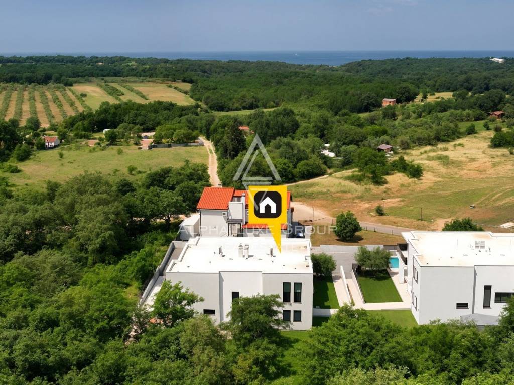 In the quiet Istrian village of Babići, near Umag, a modern house with a swimming pool, built in 2022, is for sale. The property offers sea views, complete comfort on two floors and an attractive outdoor relaxation area. It is ideal for summer, rental or permanent residence.