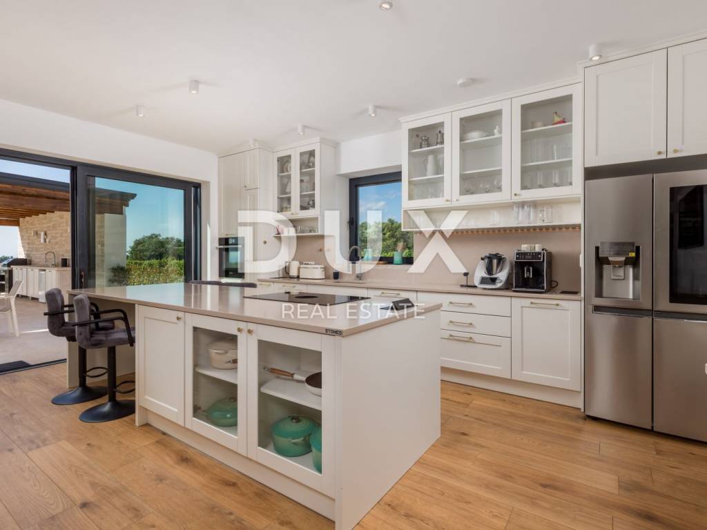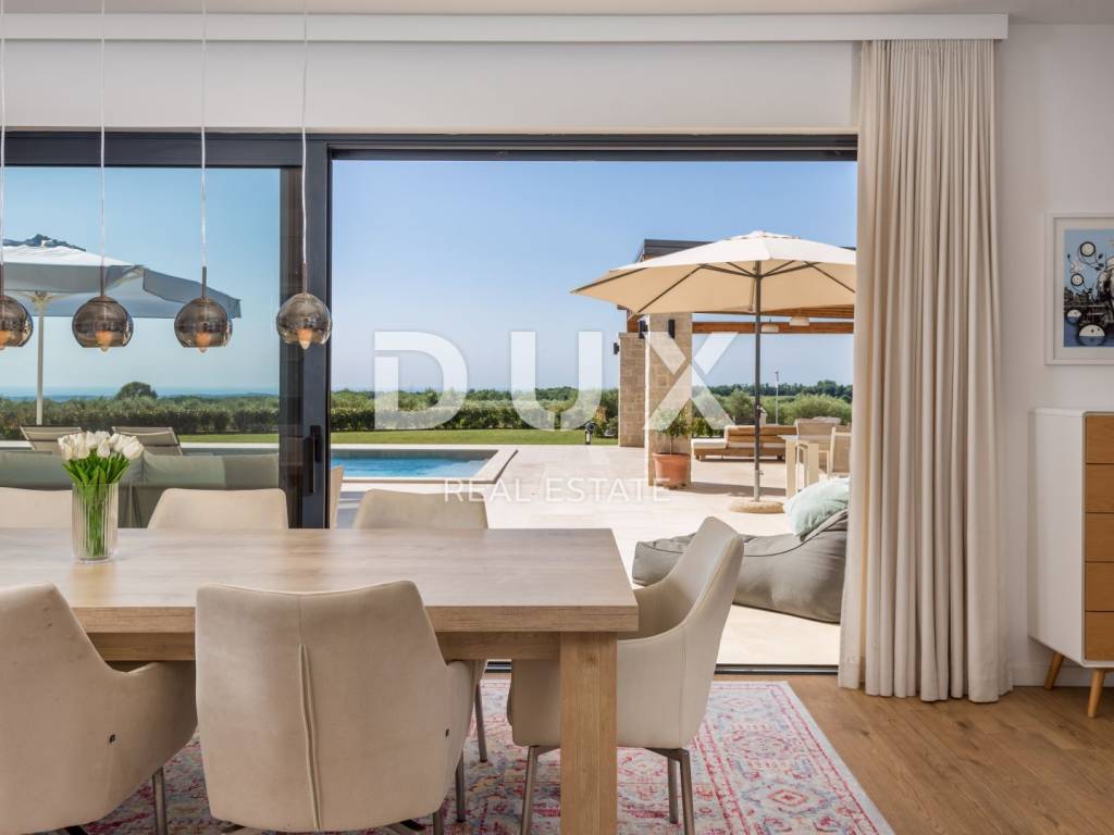 In the immediate vicinity of beautiful Poreč, there is a luxury villa located in a unique, enchanting location with a beautiful unobstructed sea view, surrounded only by greenery, thus providing complete privacy.