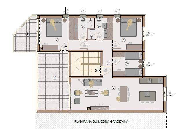 In a quiet part of the city, just a few minutes" drive from the center of Pula, there is a modern residential project consisting of 11 contemporary buildings, carefully integrated into a harmonious and safe whole, ideal for family living.For sale is apartment S4, located on the second floor of Building 6, with an area of 111 m² (90.68 m² enclosed) featuring three bedrooms, two bathrooms, a living area, a loggia, and a covered terrace. With an abundance of light and an open view, this apartment offers an exclusive and peaceful space for family life.The apartment has a functional and comfortable layout, and the quality construction and modern design ensure a high standard of living.The apartment comes with a parking space and a garage.The location offers the perfect balance between proximity to all essential amenities (schools, shops, kindergarten, city center) and a tranquil environment, making this property ideal for young families, couples, or as an investment.For more information, please contact:Azra +385 91 611 5706 +385 98 420 885 azra@almadominvest.com