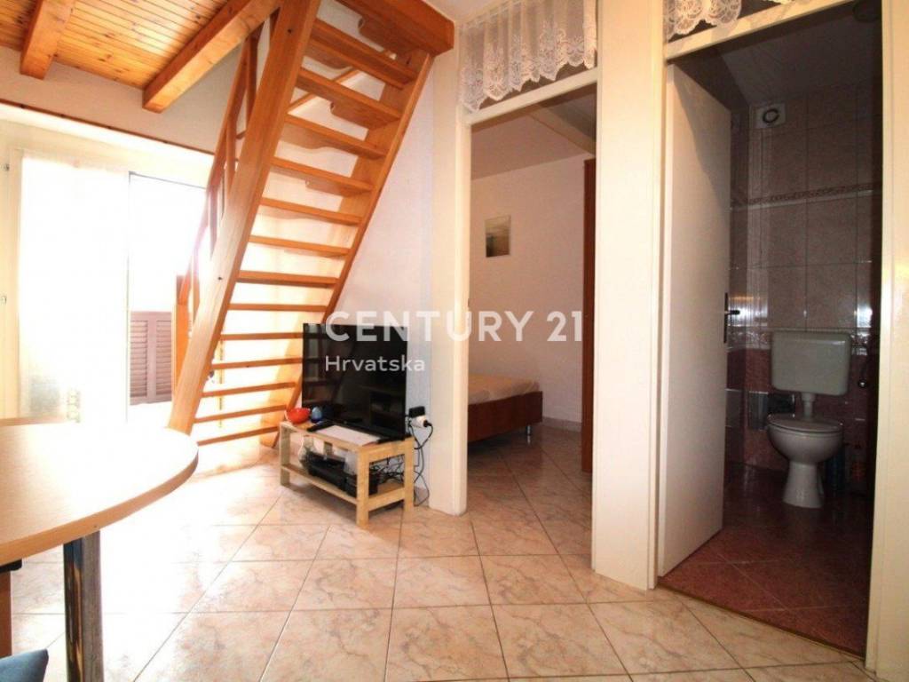 Apartment on the third floor in Červar Porto, located 150m from the sea. The apartment has an area of 56.17m2 and consists of one bedroom, a bathroom, a kitchen with a living room and a loggia, and on the mezzanine there are two smaller bedrooms with a shared bathroom. The apartment has been renovated and all installations are new.