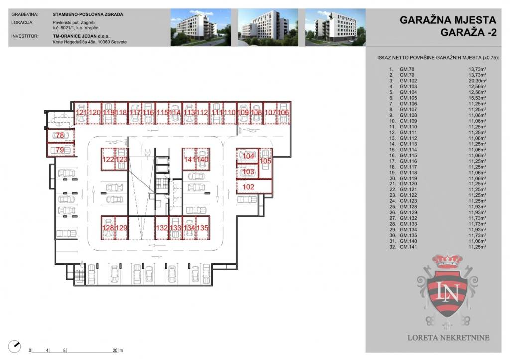 Na prodaju garaža, 20,70 m2. Nalazi se u stambeno-poslovnoj zgradi iz 2021. na Pavlenskom putu 3, u naselju Špansko-Oranice. Stambeno-poslovna zgrada projektirana je kao slobodnostojeća s 2 podzemne etaže. Ulaz u podzemne etaže je s jugoistočne strane preko natkrivene rampe s kolno-pješačke površine na terenu. Garaža zgrade se sastoji od dva nivoa unutar kojih je smješteno 126 GM (62 na etaži -1 i 64 na etaži -2). Garaža ima vrata na motorni pogon, sa daljinskim otvaranjem i struju. Podzemne etaže su uredne i redovito se održavaju.