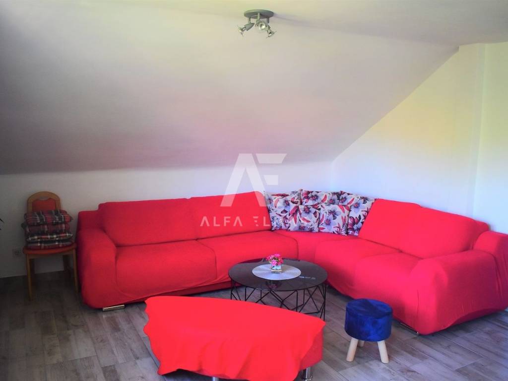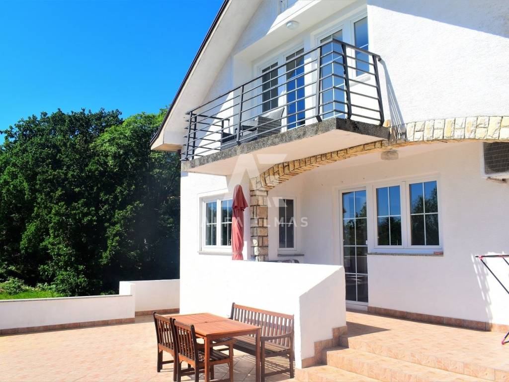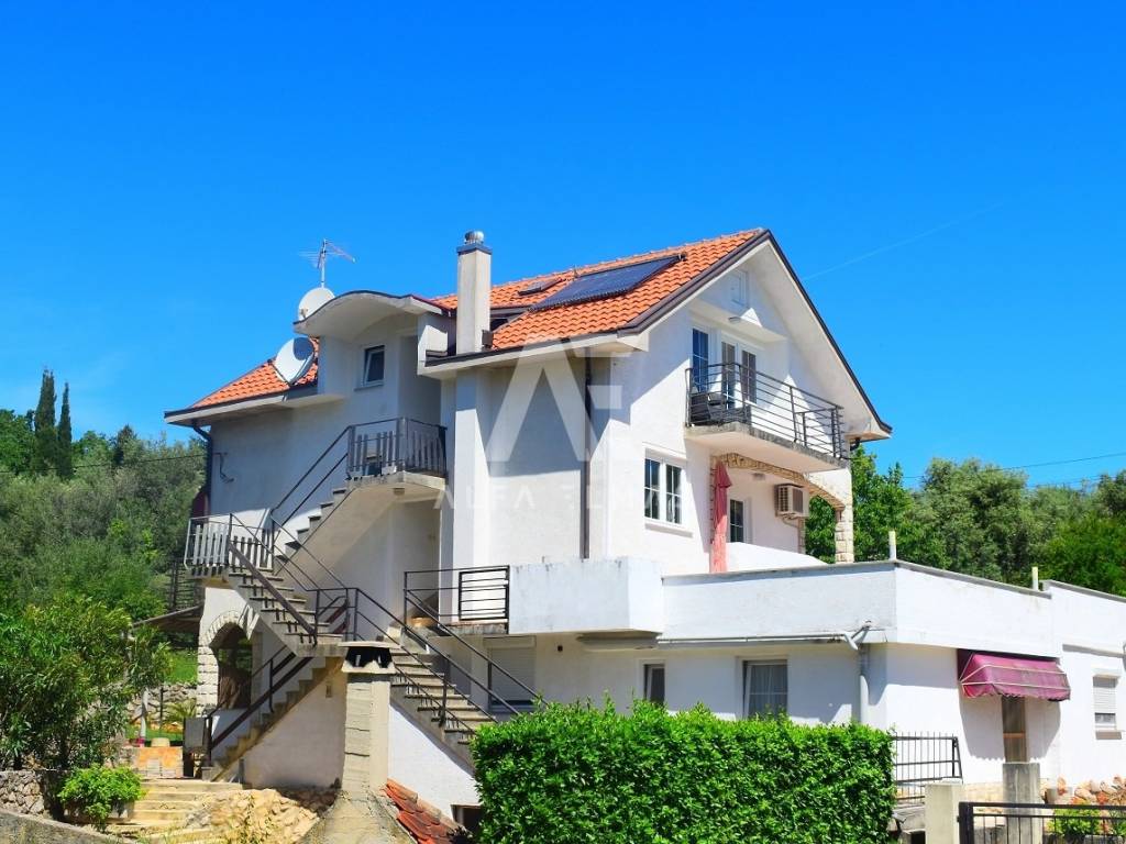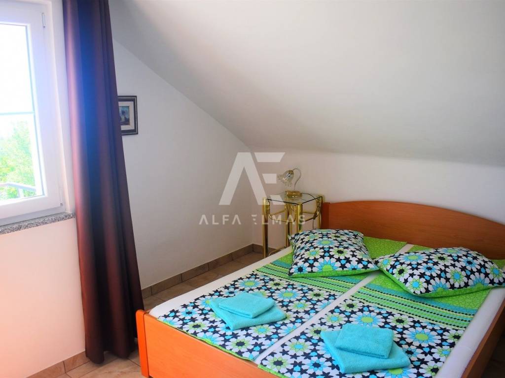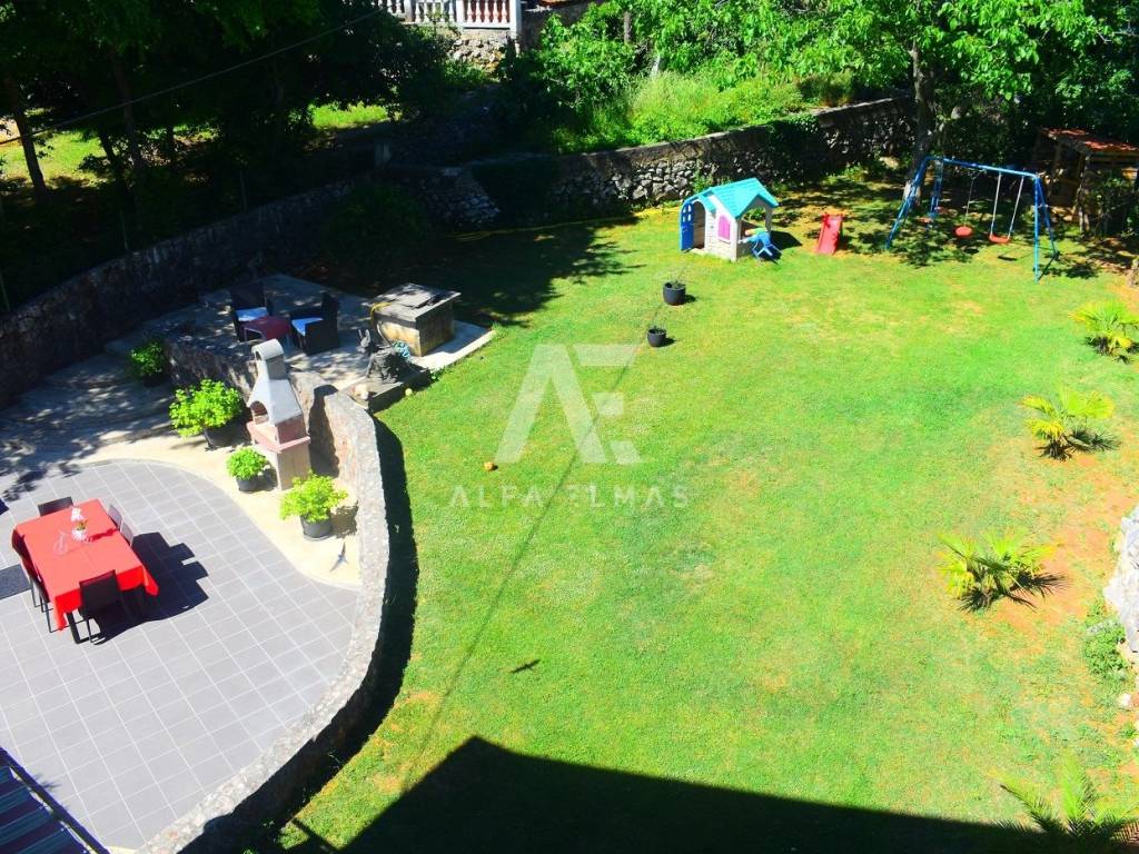 Vrbnik, surroundings, beautiful detached house with sea view, built in 1980. The house is located on a plot of 950 m2. and has a living area of ​​270 m2. The house has two floors, ground floor, first floor and attic. On the ground floor there are two apartments, one of which is fully equipped, the other is in the renovation phase. The apartments consist of a hallway, living room, kitchen, dining room, bedroom and bathroom. The external stairs lead to the first floor of the house, where there is a two-room apartment consisting of an entrance hall, two bedrooms, a bathroom, a kitchen, a living room and a dining room from which there is an exit to a covered terrace with a fantastic view of the sea!! On the second floor, in the attic, there is a two-room apartment consisting of two bedrooms, a bathroom, a kitchen, a living room and a dining room from which there is an exit to a covered terrace with a wonderful view of the sea!! The detached house has a landscaped garden with a barbecue, a small playground for children, large green areas decorated with Mediterranean plants and trees. The equipment of the house in the vicinity of Vrbnik includes pellet central heating, solar heating for hot water, high-quality ceramics, sanitary facilities, SAT-TV, fully equipped kitchens with quality electrical appliances. The house is only 900m away. from beaches, promenades and all amenities. Documentation in order!!
