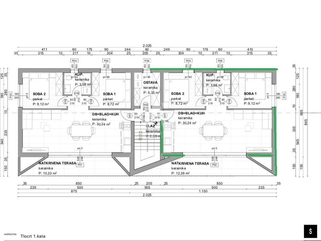 Detached villa with four apartments was built in 2024, ground floor + first floor and is located on a plot of 676 m2.