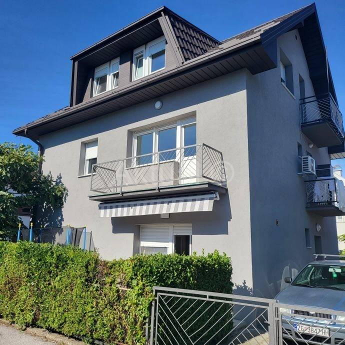 Na prodaju trosobni namješten stan na 1. katu manje stambene zgrade od tri stana na Rudešu. Stan se sastoji od : hodnika sa ormarima, kuhinje s boravkom, dvije spavaće sobe, kupaonice i tri balkona ukupne obračunske površine 61.27 m2. U potkrovlju objekta uređen je i namješten studio apartman (13.81m2) kao zasebna cjelina . Stanu pripadaju i 3 parkirna mjesta, dio vrta kao i spremište u podrumu.