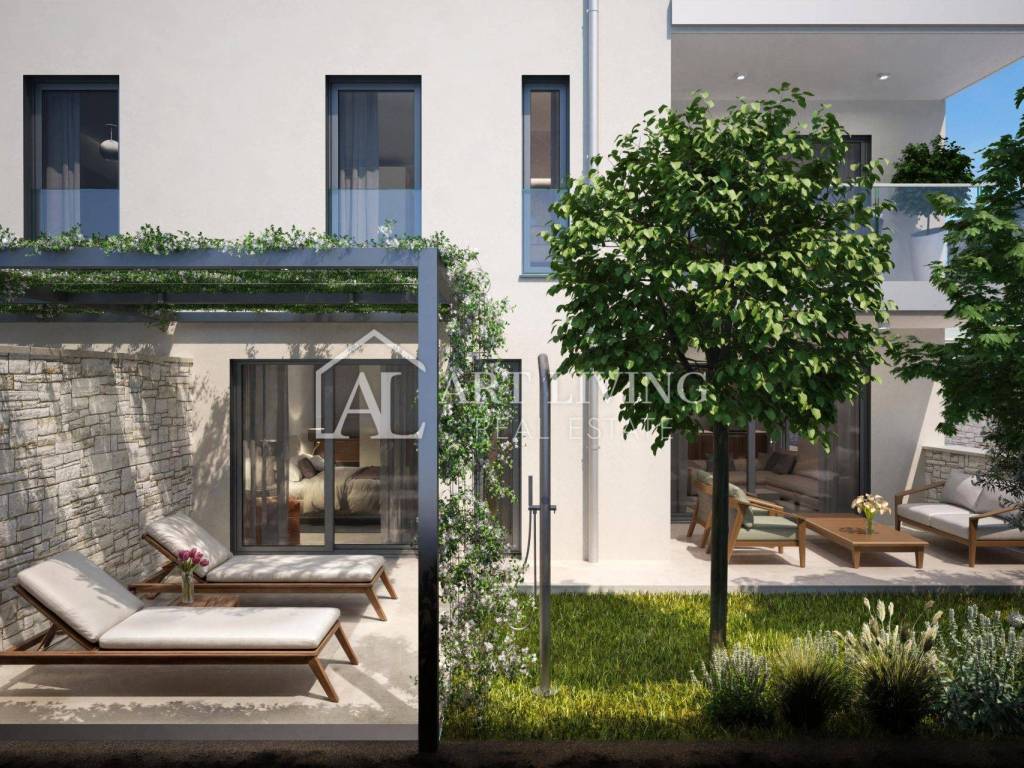 Only 600 m from the sea and beautiful beaches, in a quiet and pleasant location, 4.5 km from the center of Umag and 8 km from the Slovenian border, this attractive newly built apartment is for sale, located in a small residential building with a total of 6 apartments.
