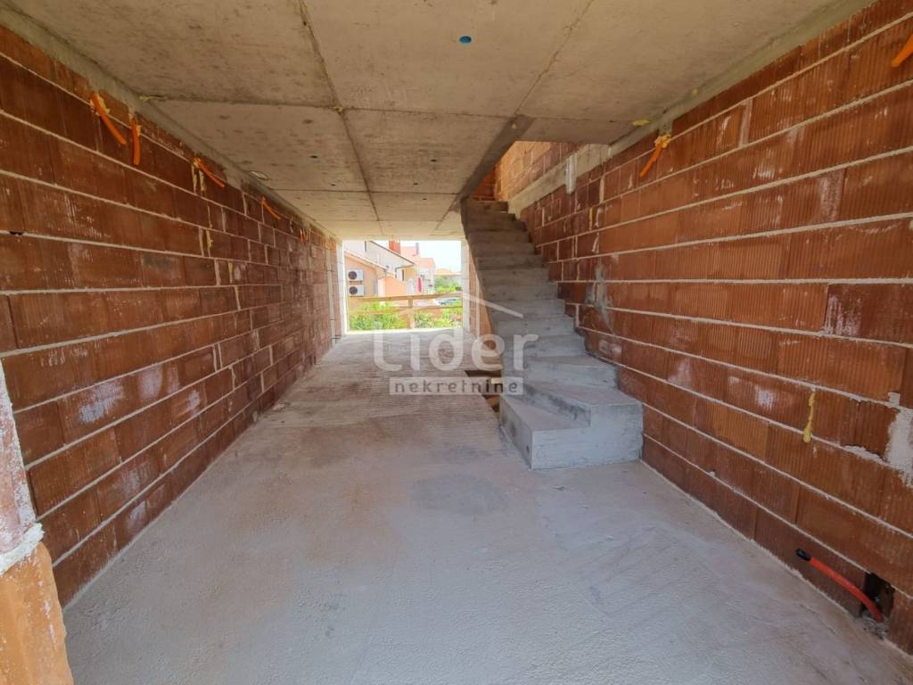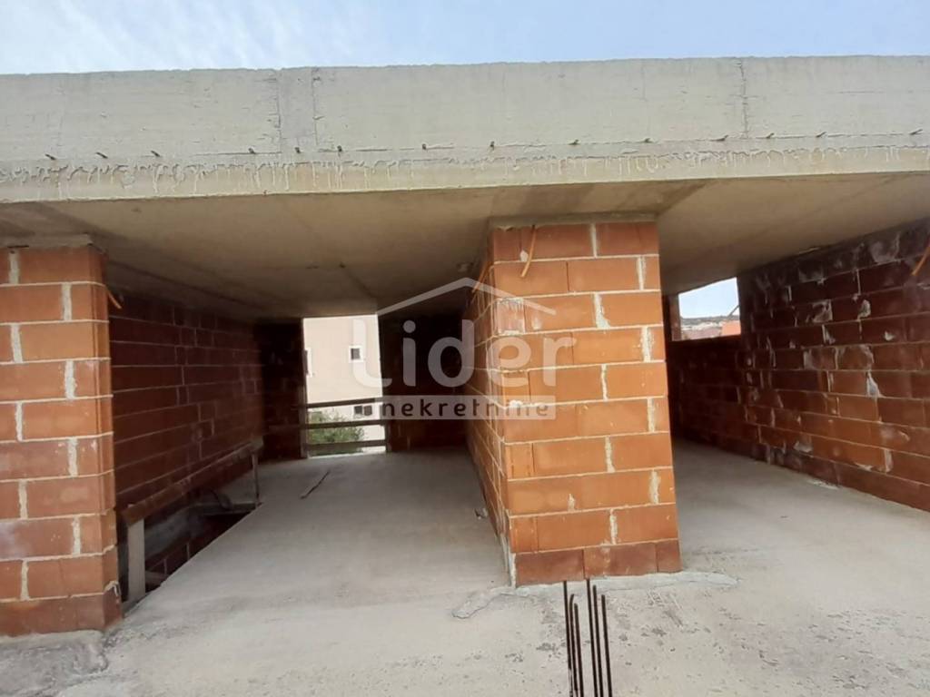 Zidarski radovi su u potpunosti završeni po projektnoj dokumentaciji i plaćeni su priključci struje i vode.Stanovi su koncipirani tako da svaki ima dio okućnice i terasu u prizemlju,balkon na prvom katu i lođu na drugom katu.