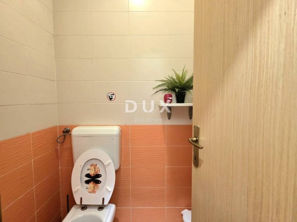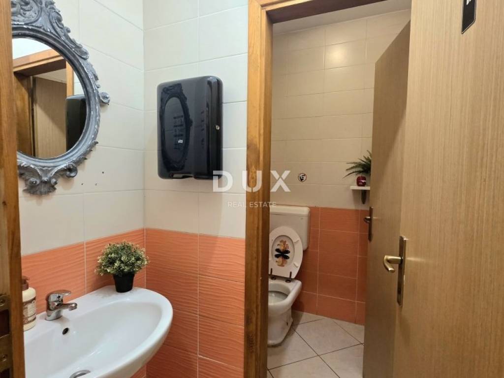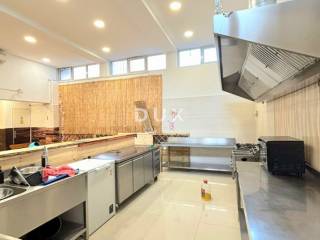 Riječ je o elegantno oblikovanom prostoru obloženom kvalitetnom gres keramikom, dok aluminijska stolarija, staklena ulazna vrata i visina prostora od cca 5m naglašavaju suvremeni poslovni karakter i prostranost interijera. Prostor posjeduje dva sanitarna čvora jedan s wc-om i umivaonikom, a drugi s kadom, što otvara potencijal za šire funkcionalne mogućnosti korištenja.